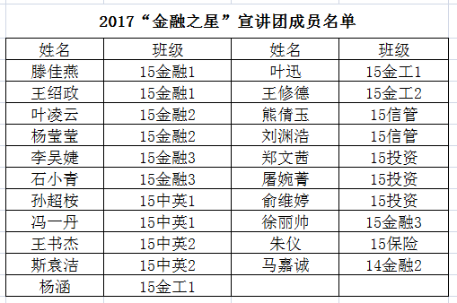 在“金融之星”评比活动的基础上,组建 “金融之星”宣讲团,通过朋辈教育分享交流成长事迹,引领广大学生共同成长与进步。相信在不久的将来,一支由优秀金融学子组成的“金融之星”宣讲团将在足球直播线上看