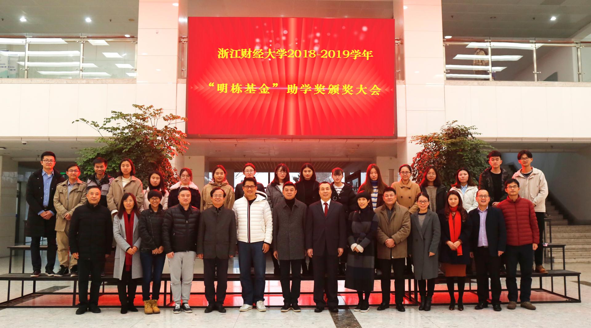 12月20日下午,2018-2019学年“明栋基金”助学奖颁奖大会再度在下沙校区举行。校党委书记李金昌、校党委副书记黄建新、蓝山投资有限公司董事长王晓明、浙江盈阳资产管理股份有限公司创始人楼栋、蓝山投资有限公司总裁王柳琳、浙江盈阳资产管理股份有限公司总经理孔繁岗、关瑞慈善基金会执行会长吕霞、足球直播线上看