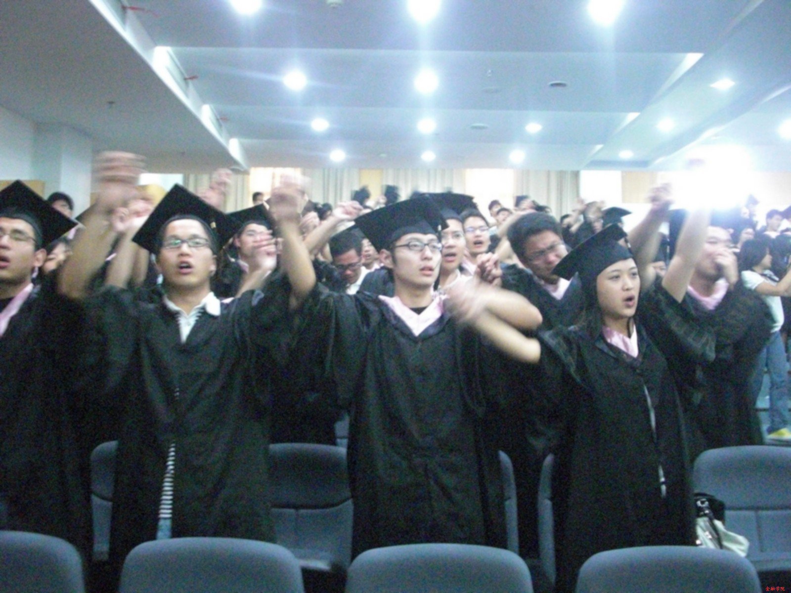 2009届毕业典礼在此隆重举行。在雄壮的国歌声中,庄严的毕业典礼正式开始。