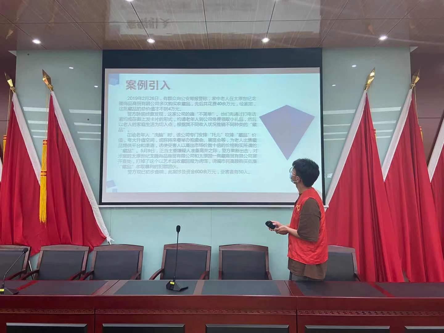 青年志愿者服务中心的同学们为居民们开展了防范金融网络诈骗的主题宣讲。志愿者们通过自己身边同学的被诈骗的案例引入主题,为居民们分析了金融诈骗成功率高、受害人群广、骗取金额高的特点。接着,志愿者们详细讲解了常见的诈骗类型,如炒股票、炒外汇、网上团购、网络销售保健品、电信诈骗等等。面对上述的诈骗案例,志愿者们详细讲解了应对措施,并对常见的诈骗现象提出了应对建议,希望居民们在面对大额资金转移时一定要先与家人沟通或报警确认。