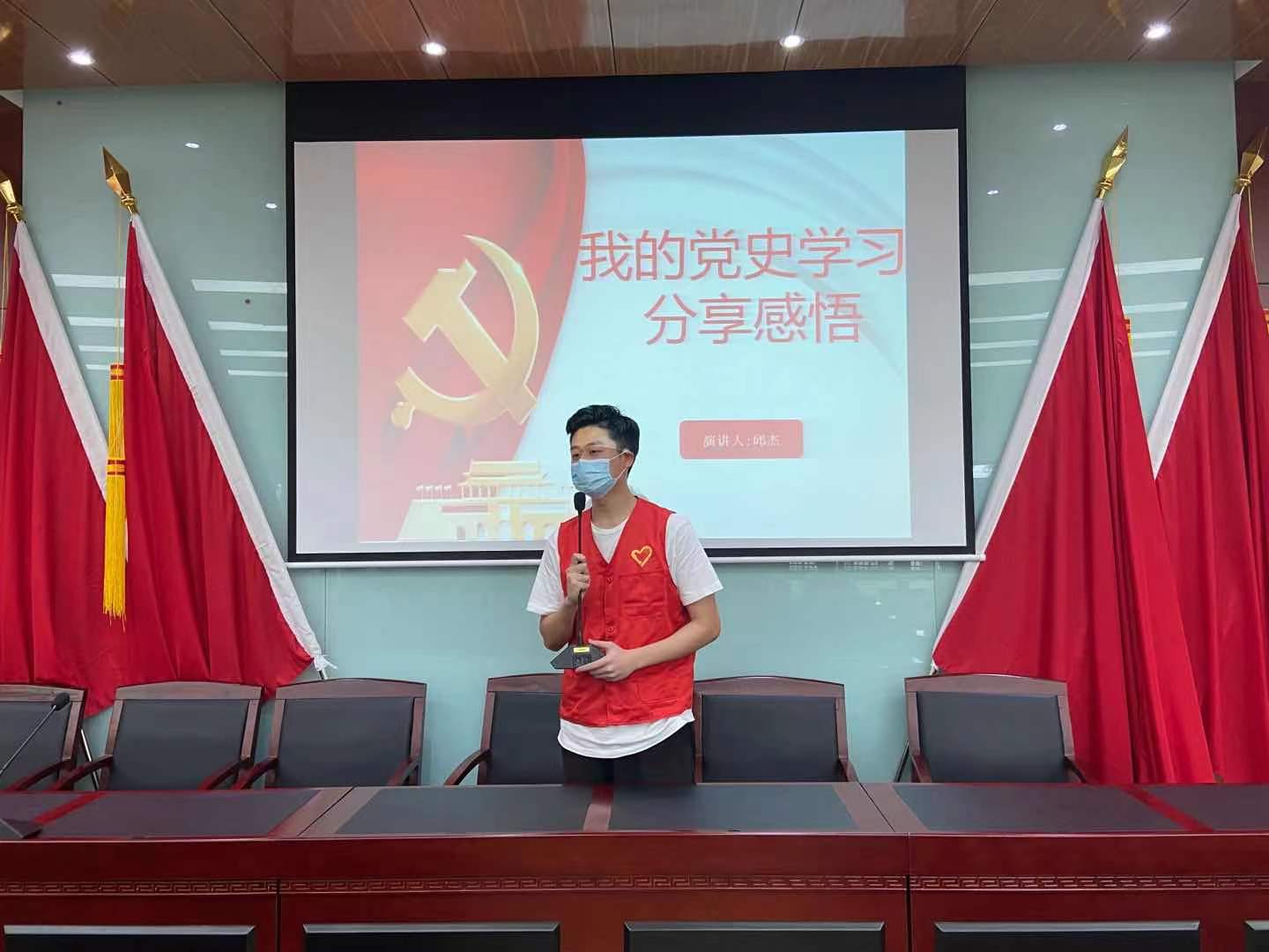 本科生第一党支部的李梁钧同学分享了革命烈士江善忠“死到阴间不反水,保护共产党万万年”的党史故事,本科生第二党支部的邱杰同学分享了自己学习党史的感悟,两位同学的PPT图文并茂、主题鲜明、内容详实,通过党课活动带动社区居民学史知史,爱党爱国。