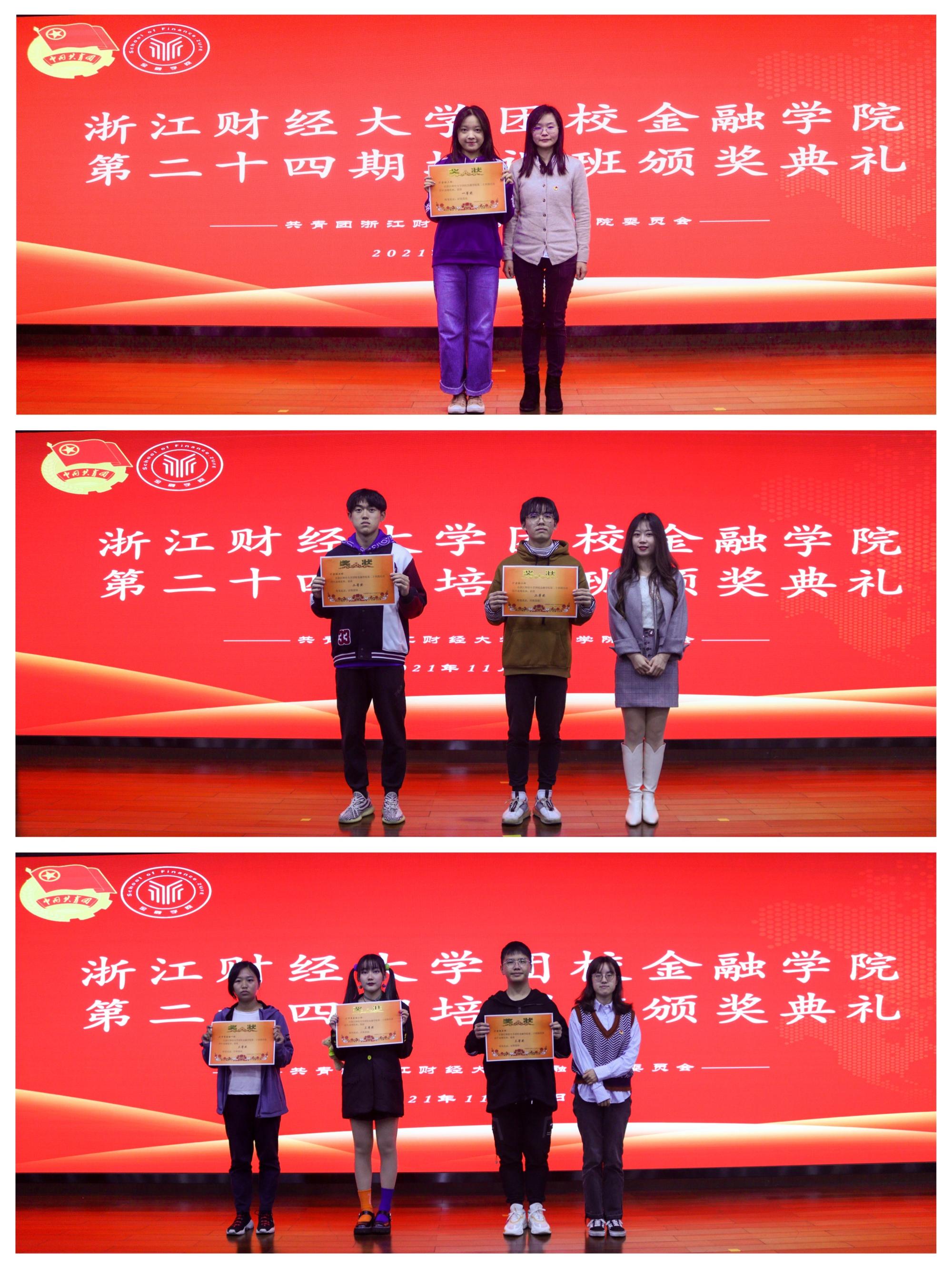 评选出“团课优秀团支部”和“团课优秀学员”。11月20日在学术四报举行了颁奖典礼,王伟伟老师,谢琳老师和沈晓云老师为获奖班级颁发荣誉证书。