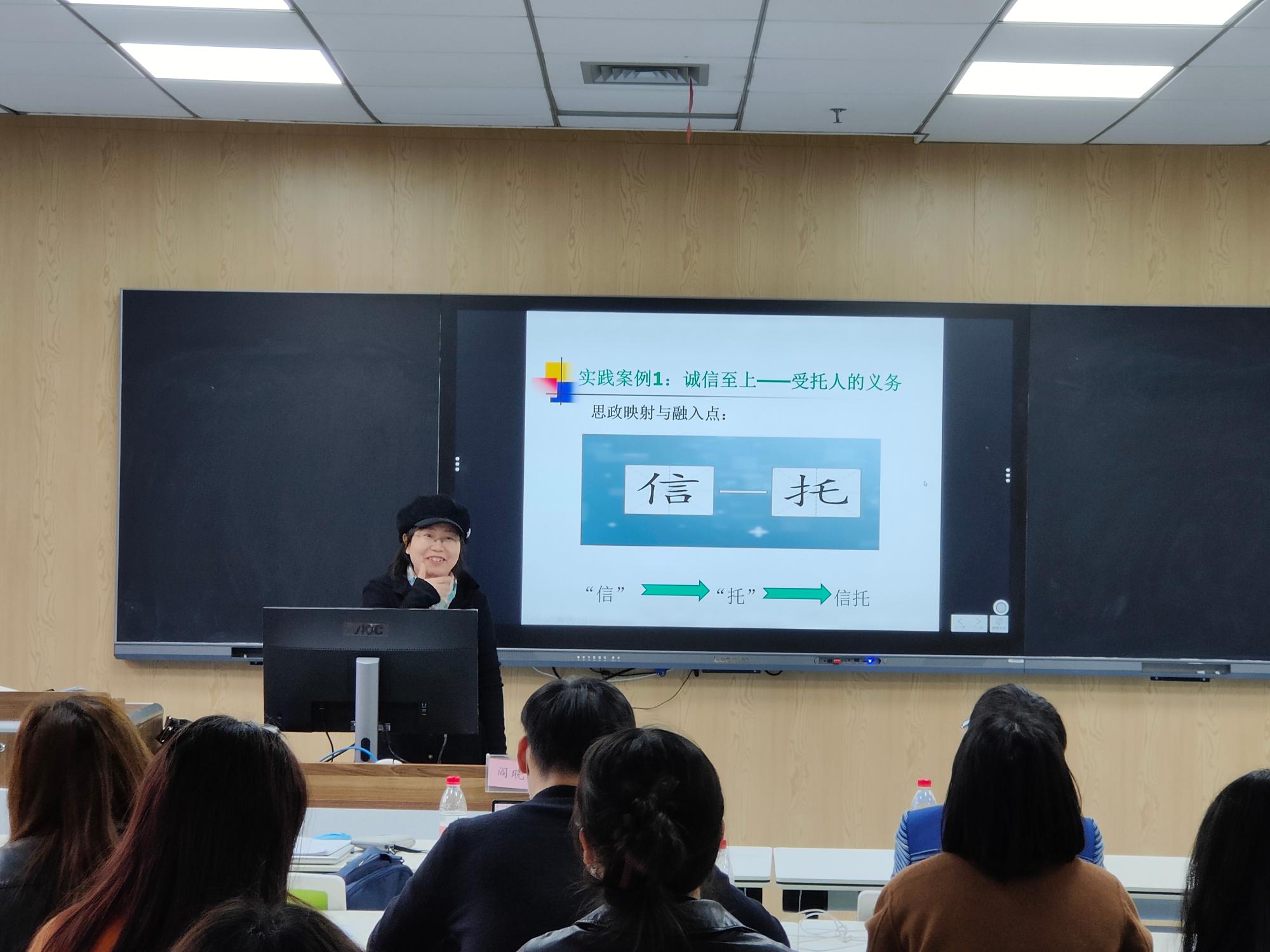 浙江省课程思政示范课程和线上线下混合式一流课程负责人阎晓春老师,以《信托与租赁》为例,介绍了课程思政建设的经验,并结合“诚信至上—受托人的义务”和“表决权信托—保护民族品牌的利器”案例,分享了课程思政的切入点、案例设计以及如何运用这些案例引导学生为国之建设添砖加瓦。