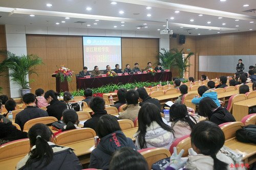 第二届“广发杯”模拟证券投资竞赛闭幕式在学术中心二号报告厅隆重举行。副校长钟晓敏、东方证券首席分析师凌俊杰先生、广东发展银行杭州分行个金部副总经理陈琳先生等嘉宾出席了本次闭幕式。