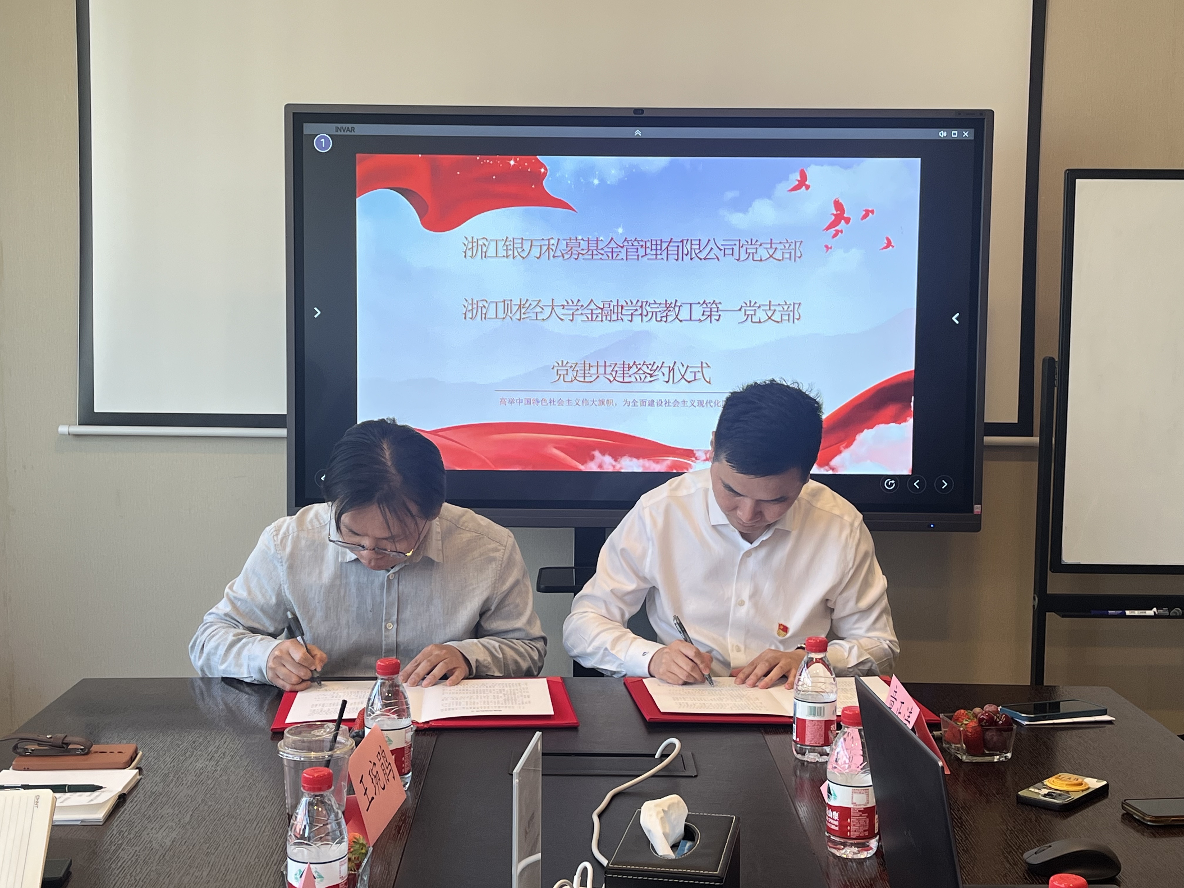 教工第一党支部与浙江银万私募基金管理有限公司党支部在三宏国际大厦举行党建共建签约仪式。浙江银万私募基金管理有限公司党支部书记、总经理、2004届校友赵峰,足球直播线上看