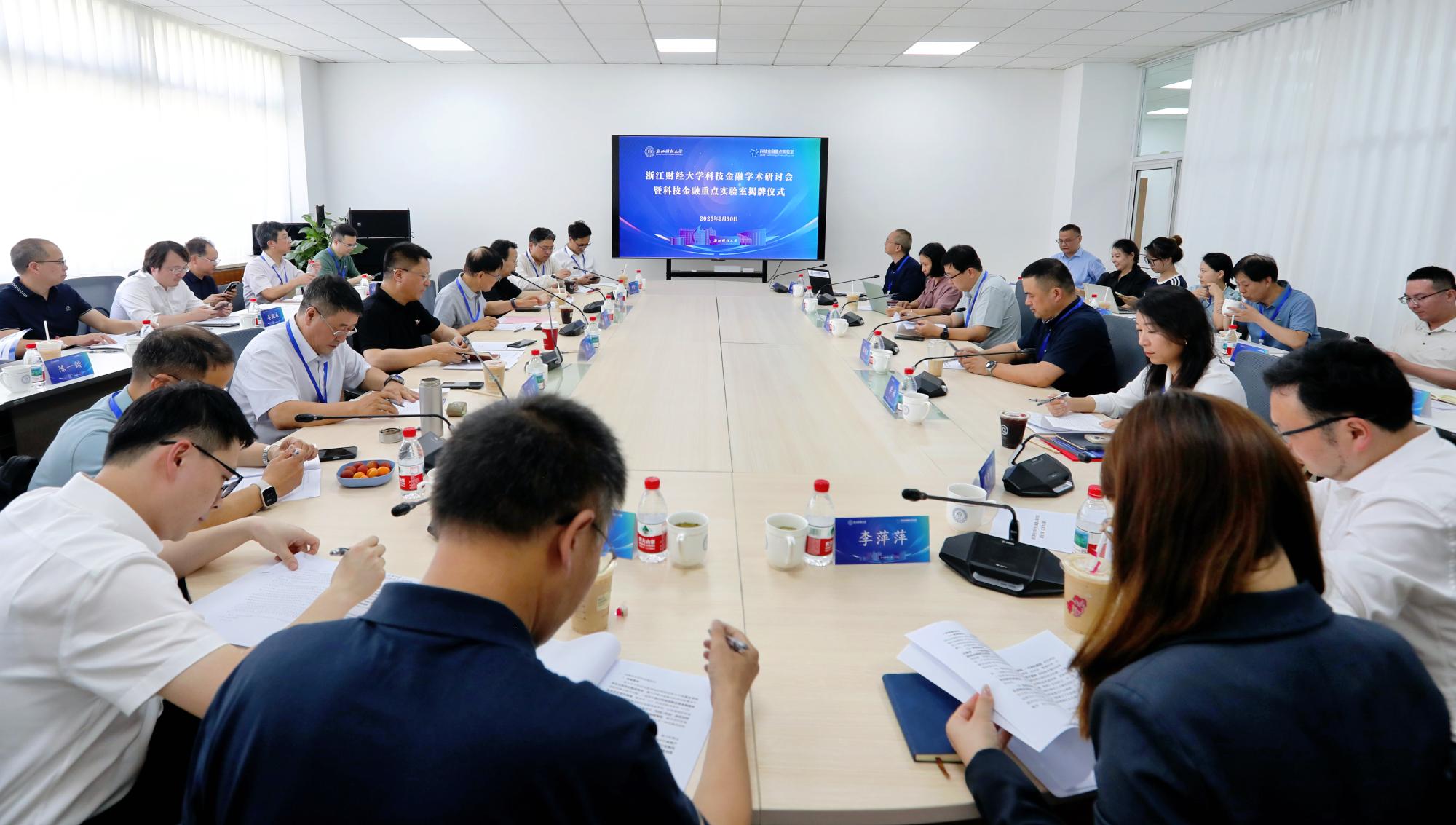 在热烈的掌声中,魏江与张维教授、金聪处长、陈赞安副处长等领导嘉宾共同为“浙江财经大学科技金融重点实验室”揭牌,标志着这一承载着学校战略期望的重要平台正式扬帆启航。