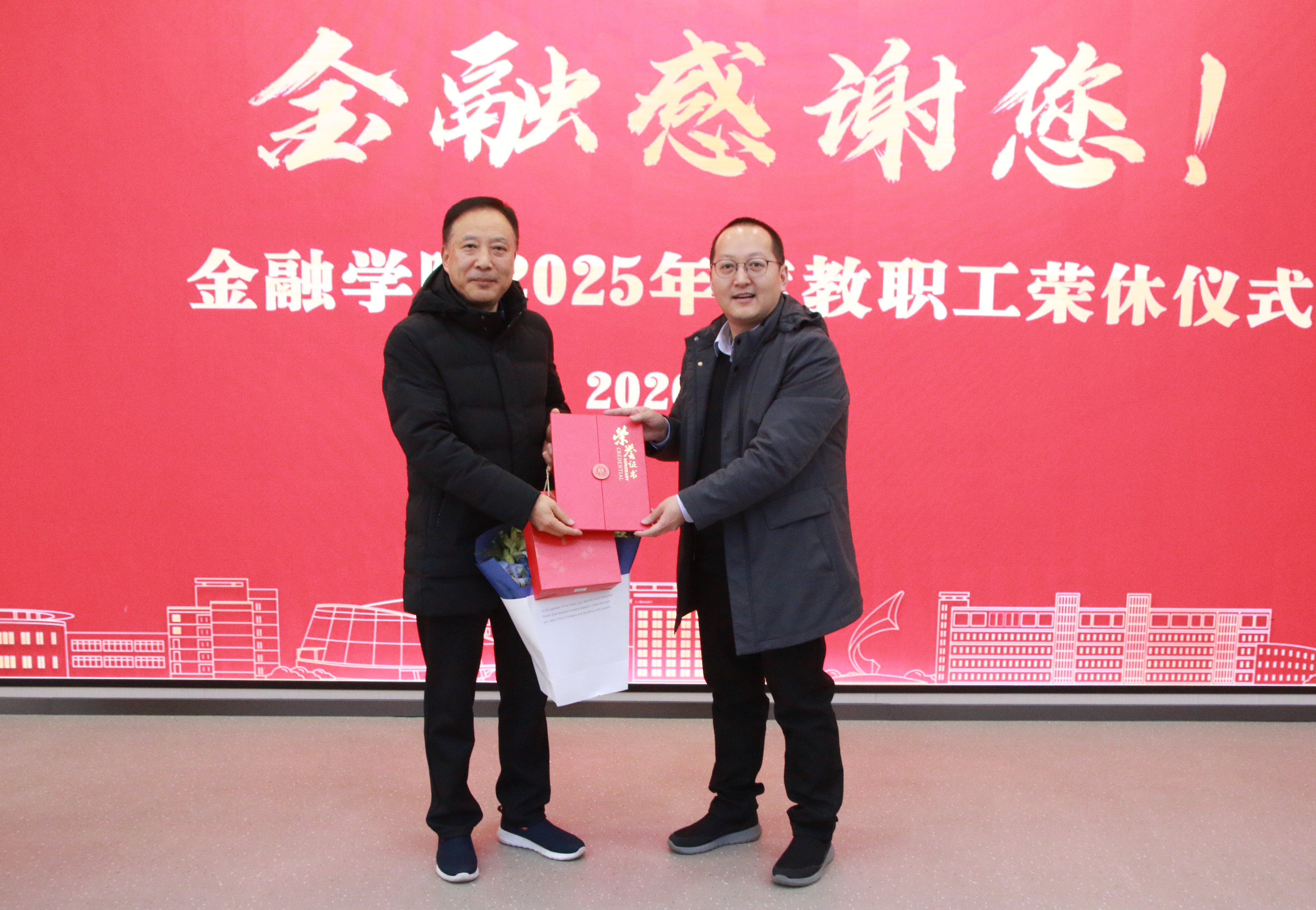 随后,大会为学院原党委书记蔡国金同志举行了温馨而隆重的荣休仪式。现场通过视频回顾了蔡国金同志在浙江财经大学工作41年的点点滴滴。蔡国金同志也深情发表了荣休感言,表达了对学院的美好祝福。朱旭明代表学院向其颁发了荣休纪念证书,全场响起热烈掌声,向蔡国金同志致以崇高敬意与诚挚感谢。