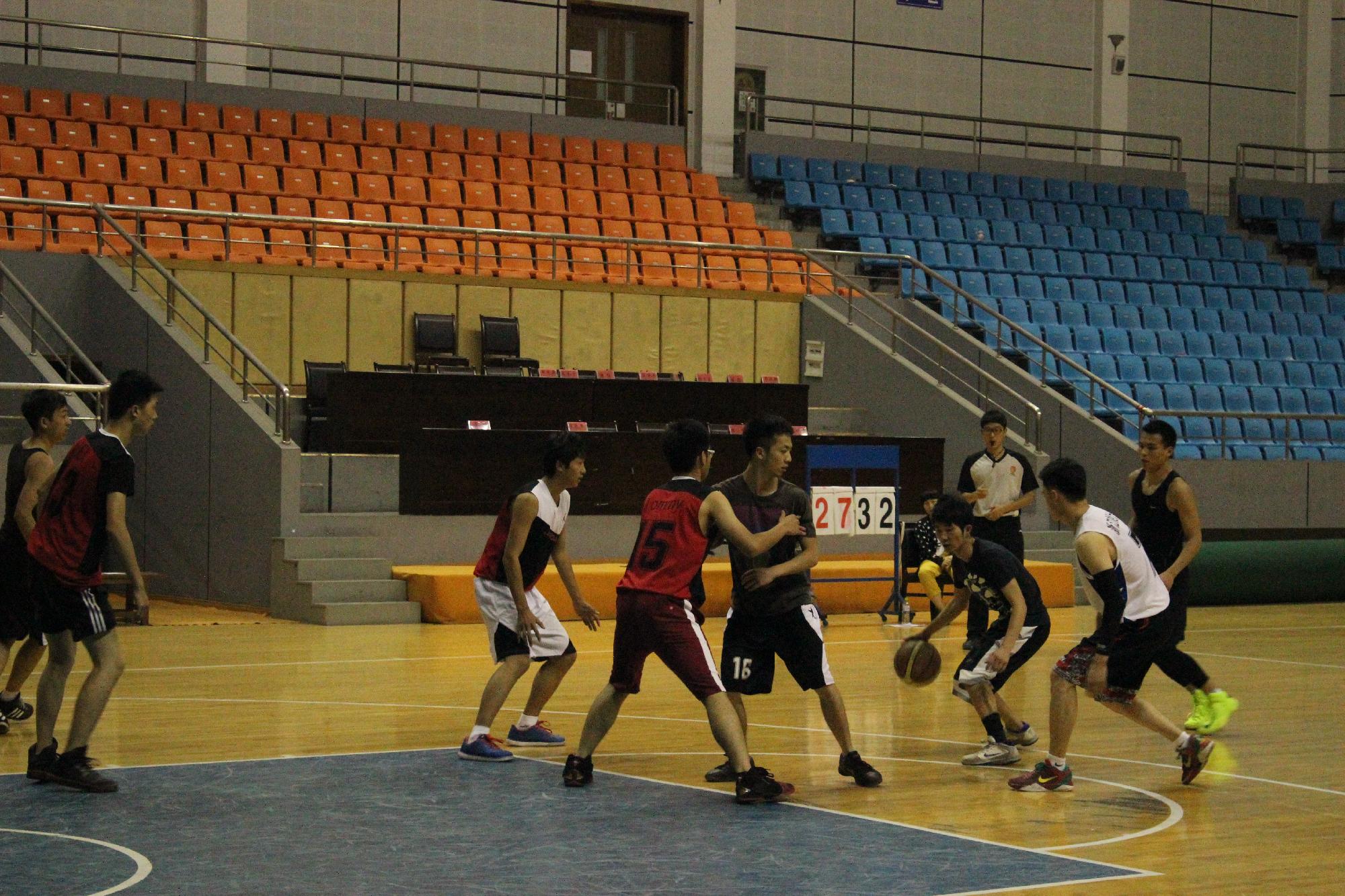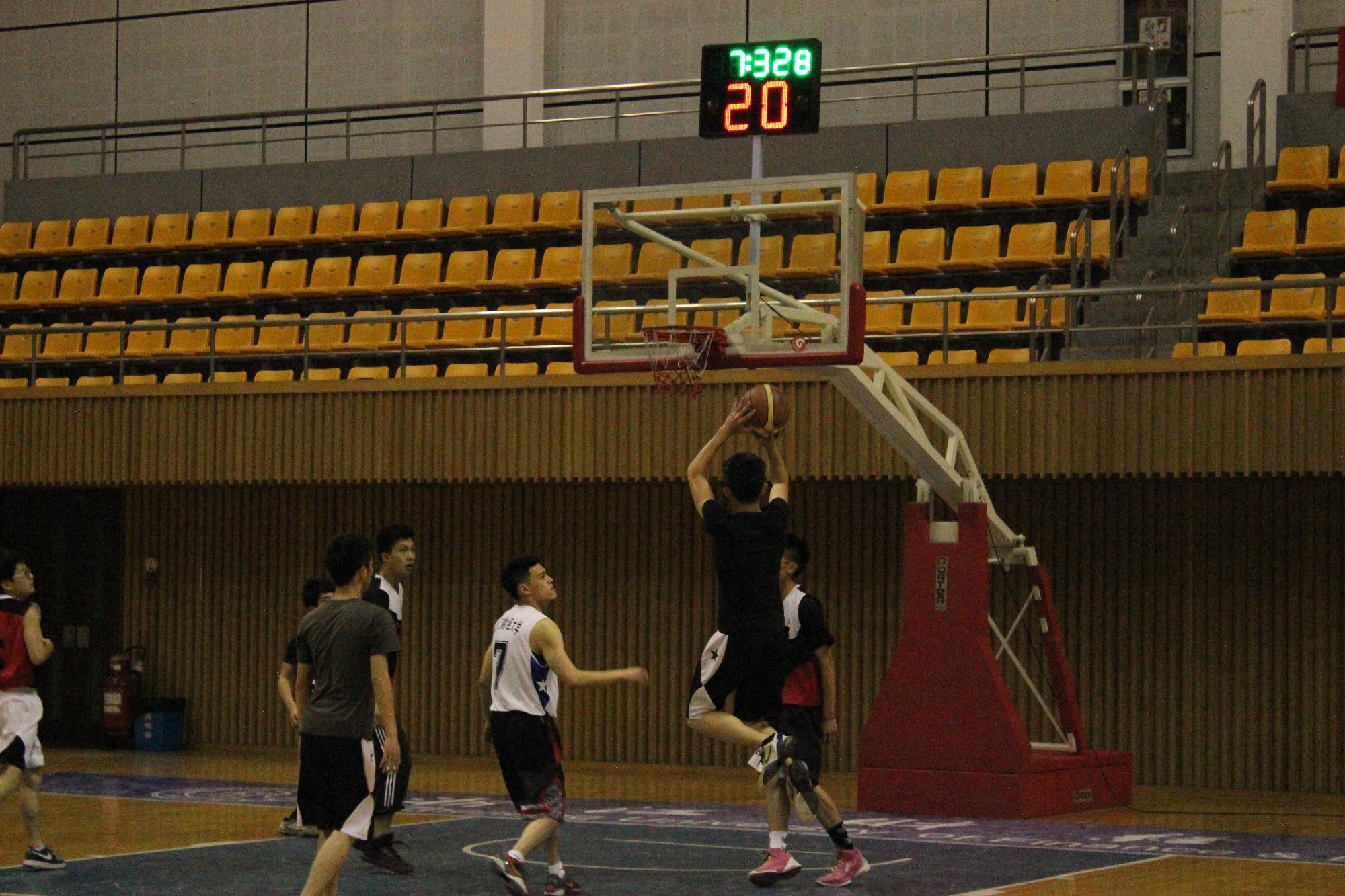 第三节的比赛更为激烈,场上球员虽显疲惫但仍然斗志昂扬,不仅仅是进攻卖力,防守可也一点也不含糊。双方都发挥出色,比分几乎没有拉开差距。传,接,跃起,投球,一气呵成,双方快攻时矫健的身姿和流畅的动作引起了场外观众的阵阵掌声和喝彩声。随后,大四联队借着一记漂亮的空心3分球39:38反超12金工1班队。