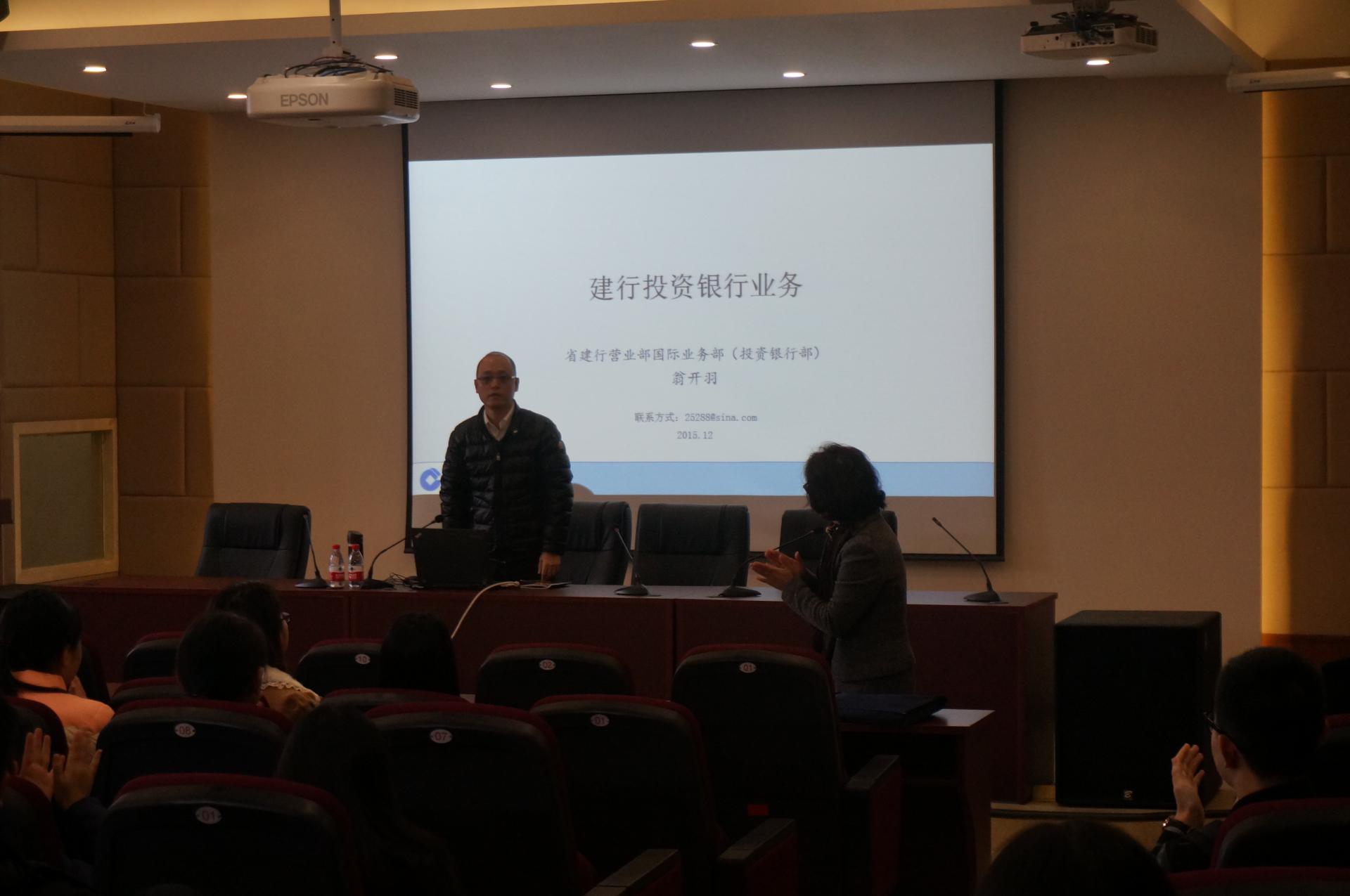 授课过程中,翁老师就四大方面展开了详细的解说。一、什么是投资银行业务;二、建设银行投资银行业务发展状况;三、投行业务今后发展趋势;四、现代金融新生态对投行业务的影响。翁老师并不局限于理论知识,他结合杭州实际情况以及中国国情进行了生动的讲述,十分引人入胜。同学们全神贯注地聆听,并与翁老师进行了互动提问,课堂气氛较为活跃。此外,翁老师还对同学们毕业后的就业方向进行了指导,诚挚地欢迎同学们毕业后前往建行实现自我价值。