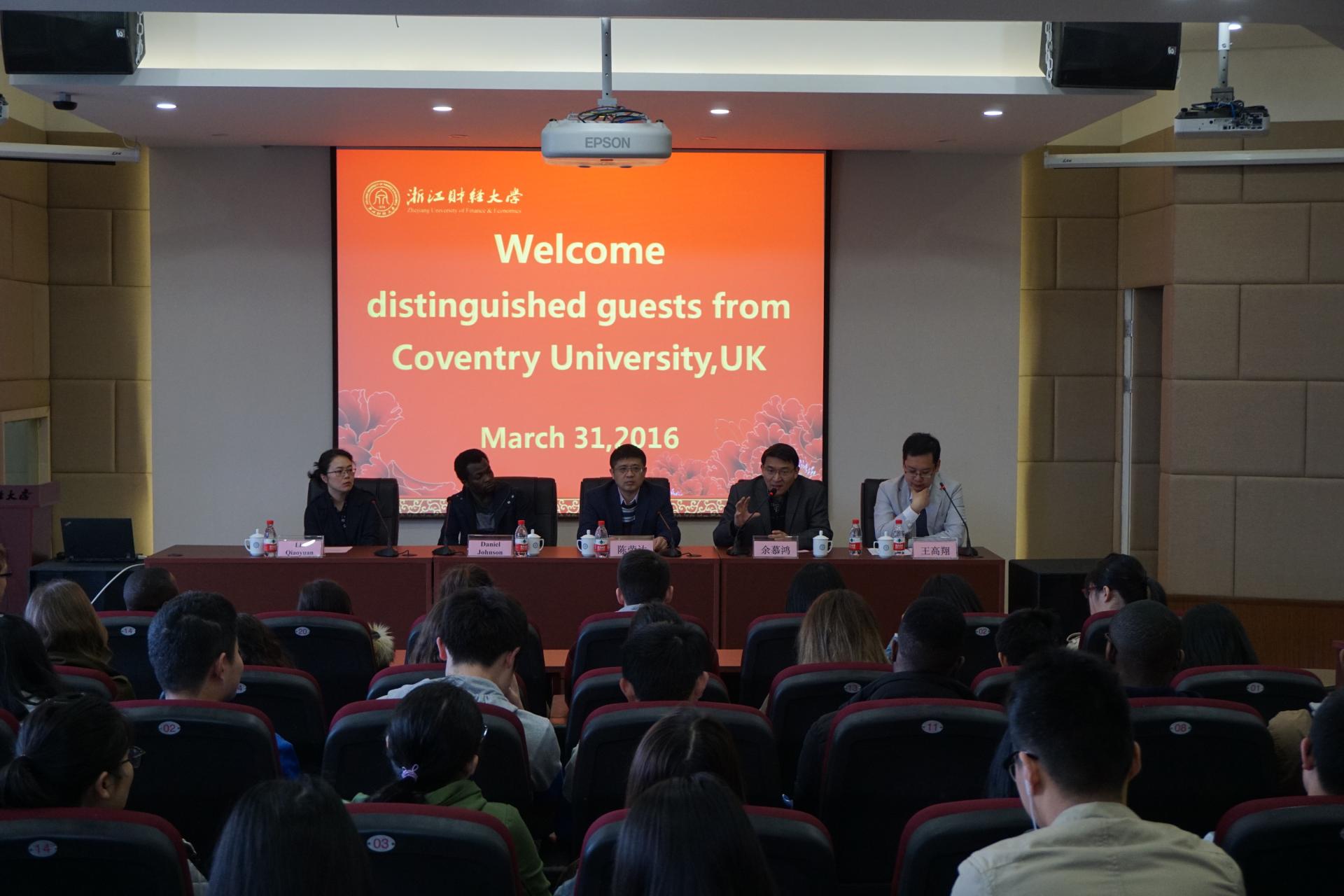 的基本情况,包括师资队伍、专业建设、教学科研以及人才培养等方面的内容。他表示,英国考文垂大学和浙江财经大学都是十分优秀的高等学府,这是一个双方学生能够近距离学习交流、实现共赢的机会,希望交流团成员能够在杭州感受到中国地道的风土人情和历史文化。