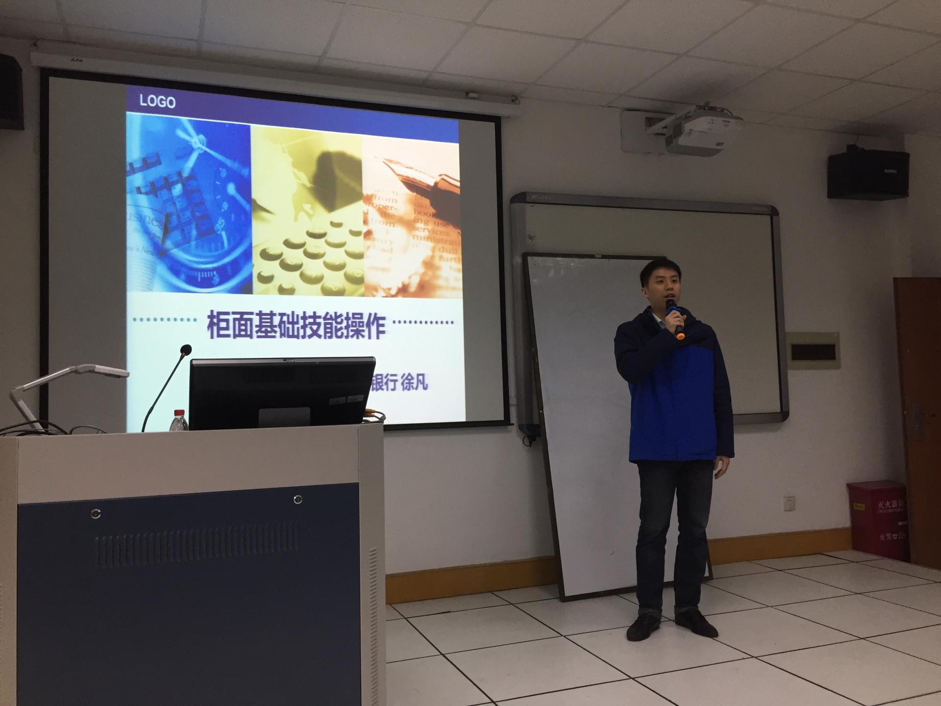 楼模拟银行实训基地,为《银行实务》课程的学生进行柜面基础技能操作培训。徐帆老师曾荣获“杭州市金融系统技能比赛”点钞第二名。他向同学们介绍了银行柜面基础技能操作培训内容和达标标准,并重点讲授了基本的点钞方法。在徐帆老师和金海霞老师的讲解和指导下,同学们用练功券进行了点钞练习,并在掌握基本要领后进行了点钞比赛。课堂气氛十分活跃热烈,同学们反映非常喜欢这样的授课内容和方式,学到了很多书本上没有的知识和技能。