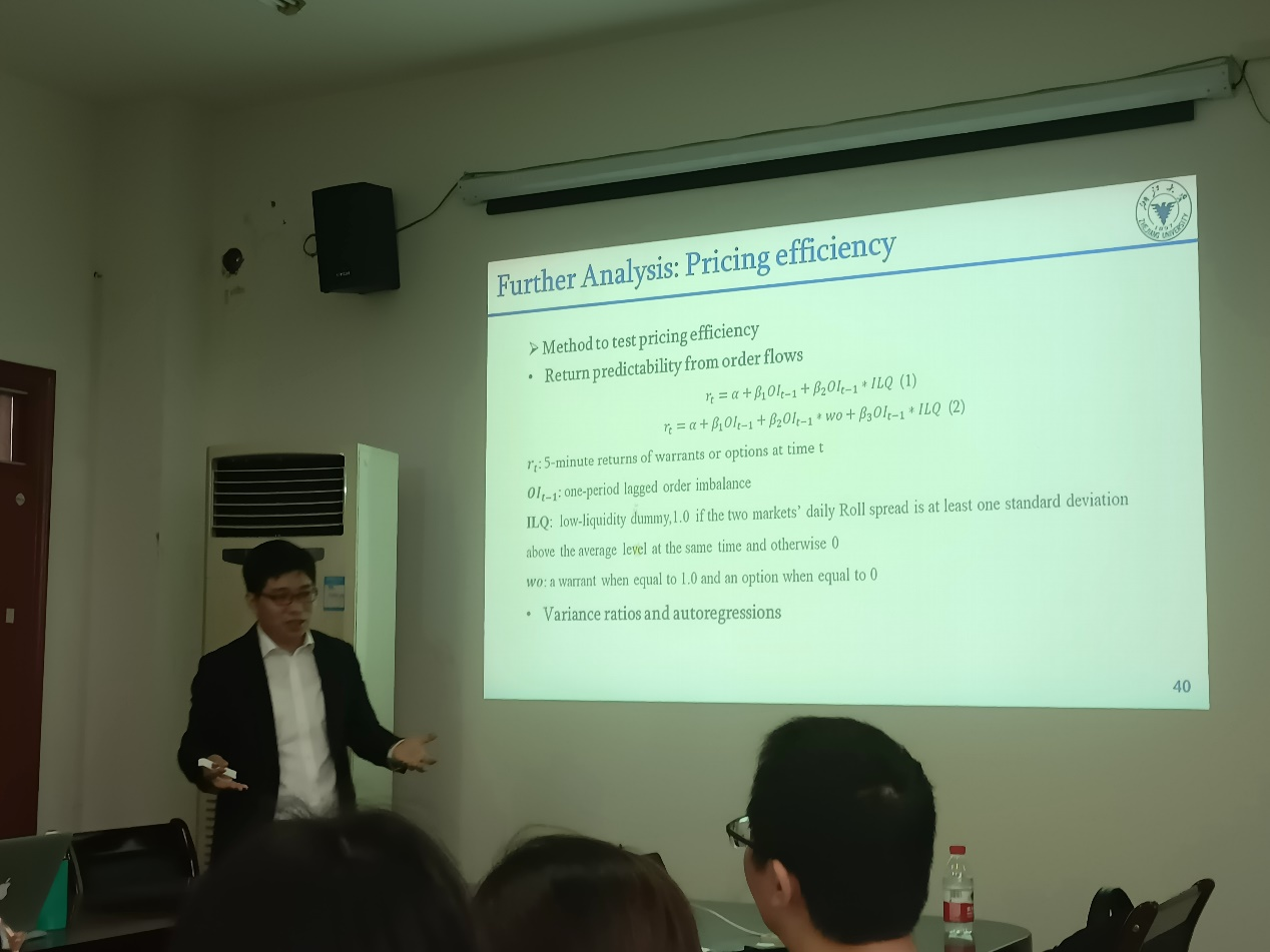 2021年11月02日下午14:30,浙江大学经济足球直播线上看 金融系骆兴国教授在足球直播线上看 422会议室进行了题为“Why are the Prices of European Style Derivatives Greater than the Prices of American Style Derivatives?”的专题讲座。足球直播线上看 多名教师和学生参加了此次讲座。讲座由林祺副院长主持。
