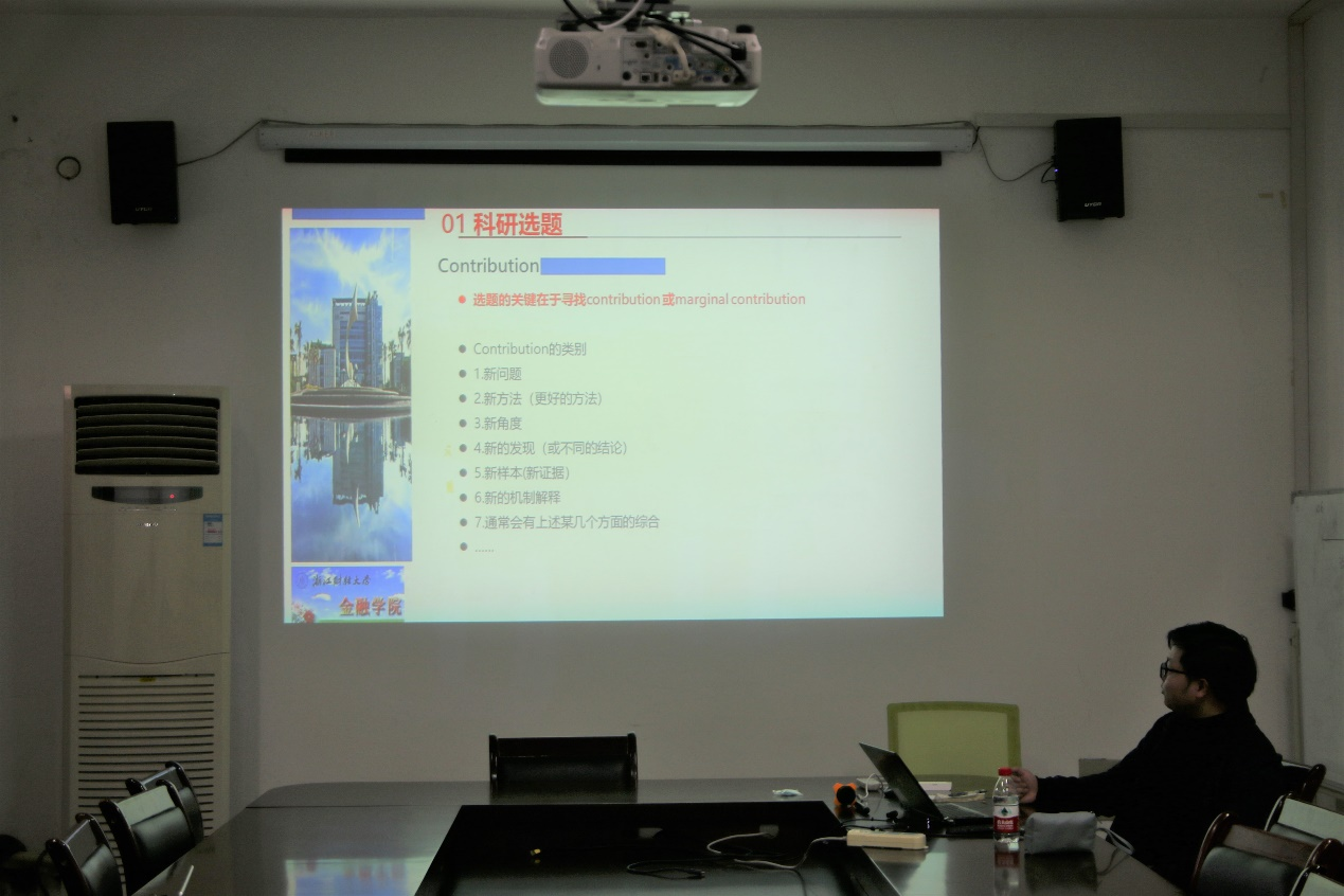 龙怀钢博士从三个方面开展本次研讨会,分别是:科研选题、写作内容和写作技巧。首先是科研选题,关键在于寻找contribution或marginal contribution。同时,龙怀钢博士以多篇论文为例,强调了选题时也要考虑到现实问题。在撰写论文时,龙怀钢博士强调了标题、摘要、引言、方法、实证结果、结论这六个方面,并且详细地介绍了每一大点的写作内容。研讨会的尾声,龙怀钢博士分享了一些写作技巧并推荐了几个文献管理工具以便用于学术探究。
