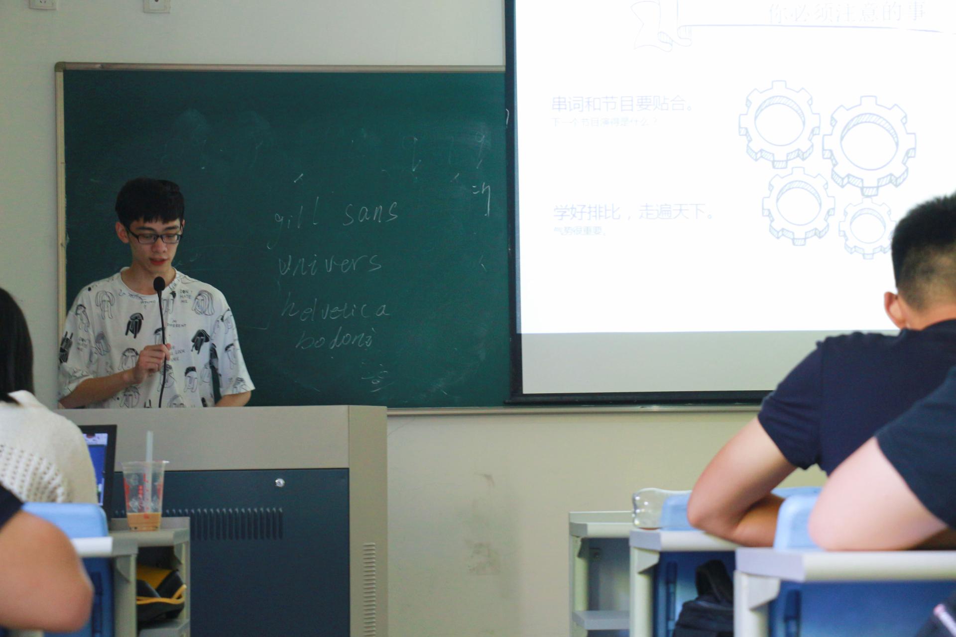 楼107教室顺利开讲。校学生会副主席沈皓轩和校新媒体工作室负责人吴荣斌作为此次培训的主讲人,分别从文书撰写和微信公众号推送两方面分享了自身的经验和技巧。