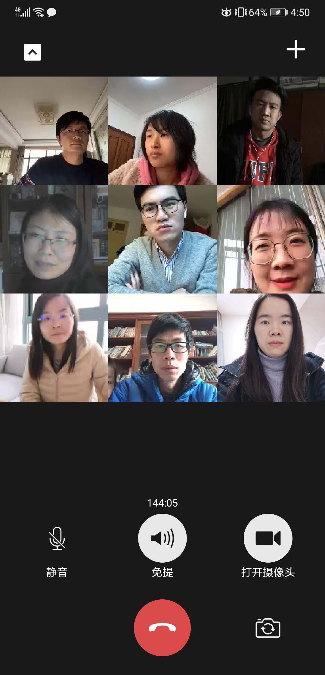 四年目标任务情况,结合自身分工,依次介绍了近期工作开展情况及本学期工作的重点难点,从党建、团学、心理、易班、困难生资助、就业等模块工作和带班工作等方面,梳理工作思考并进行线上讨论沟通。几位老师都表示,受疫情的影响,我们在不断的创新工作管理方式,在保证学生身心健康的前提下,同步推进各项基本工作,努力在毫不放松抓好疫情防控工作的同时,用新方式、新思维,利用新技术在特殊时期开展更多有意义有成效的学生服务工作。