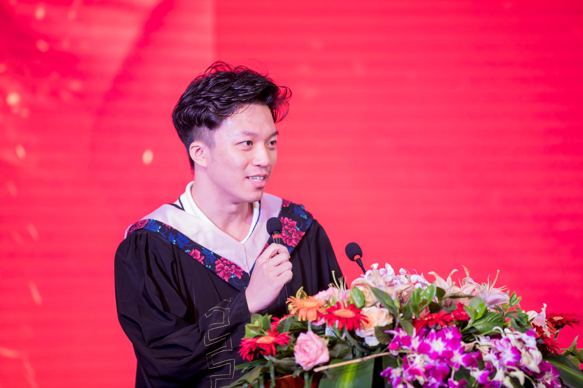 毕业生代表16金融工程1班王家辉同学回顾了自己在浙财学习的难忘经历,表达了对母校的深厚感激之情和开创美好未来的信心和勇气。