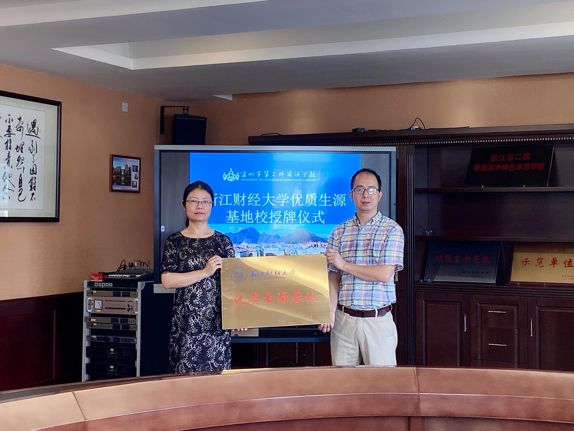 8月7日上午,浙江财经大学 “优秀生源基地”授牌仪式在温州市第二外国语学校行政楼四楼会议室举行,温州市第二外国语学校党委副书记、副校长陈德曹,党委委员、校办主任葛晓红,足球直播线上看