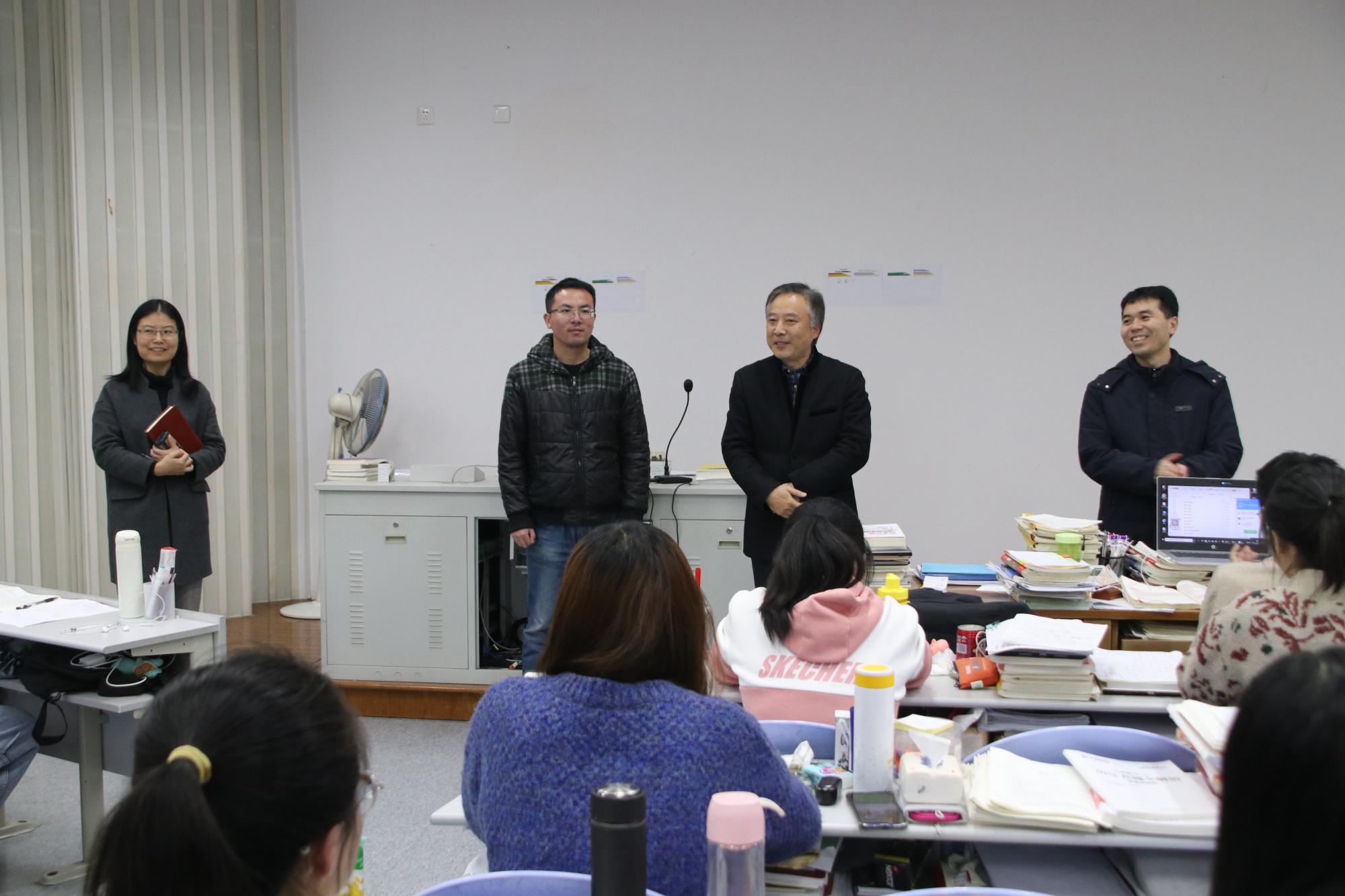 党委书记蔡国金、党委副书记谢敏、副院长林祺、傅俊辉、17级辅导员吴轶韵、翟丽媛来到考研教室,看望考研学生,为备战冲刺阶段的同学们送上冬日的慰问与祝福。