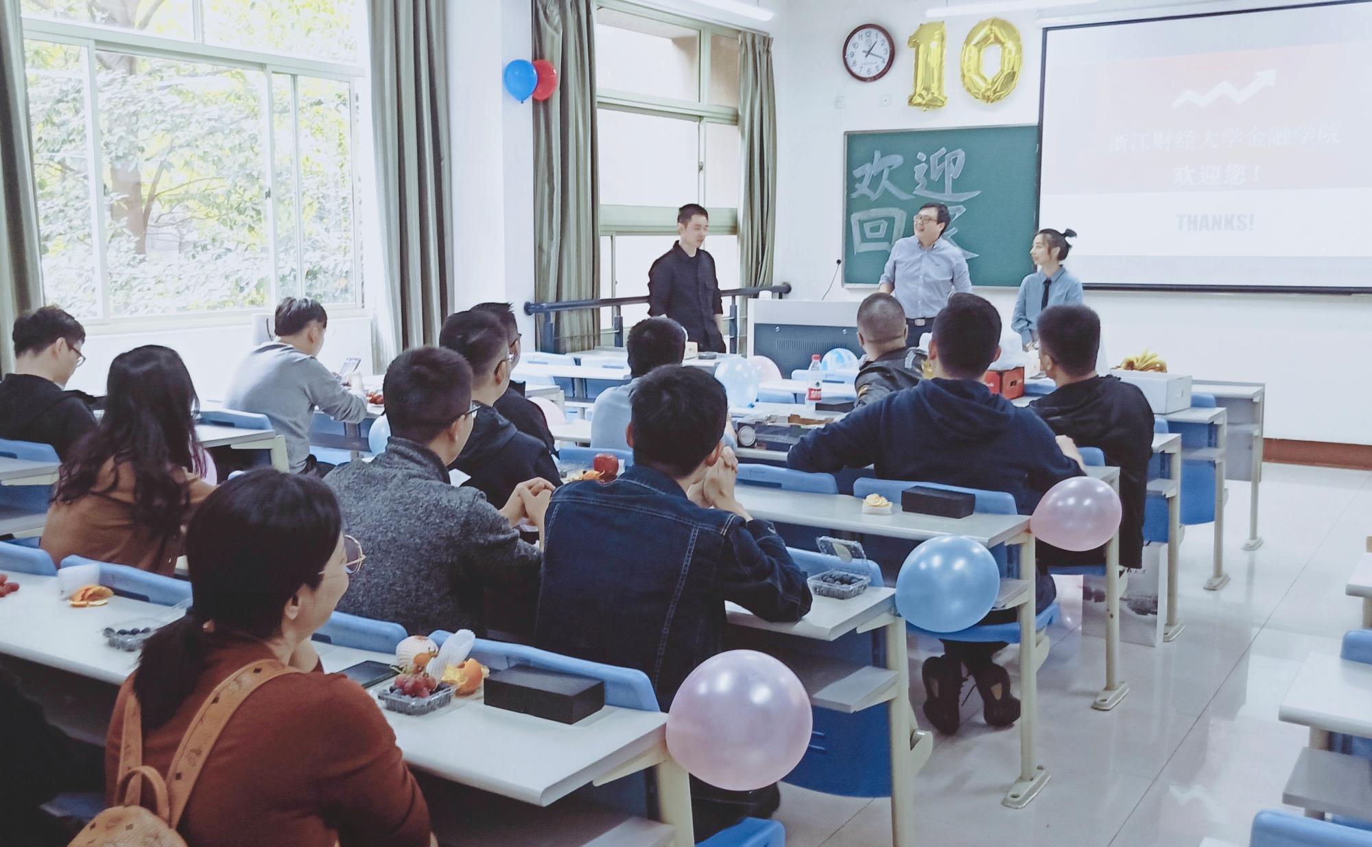 楼102教室举行。顾敏、冯勍骋、沈伟林、苏继红、李云峰、应进程、易伟光、陈美菊、华凌云、韩国辉等10位校友分享了他们的人生阅历、创业故事和生活态度,回忆在浙财大的美好时光,他们感慨万千。