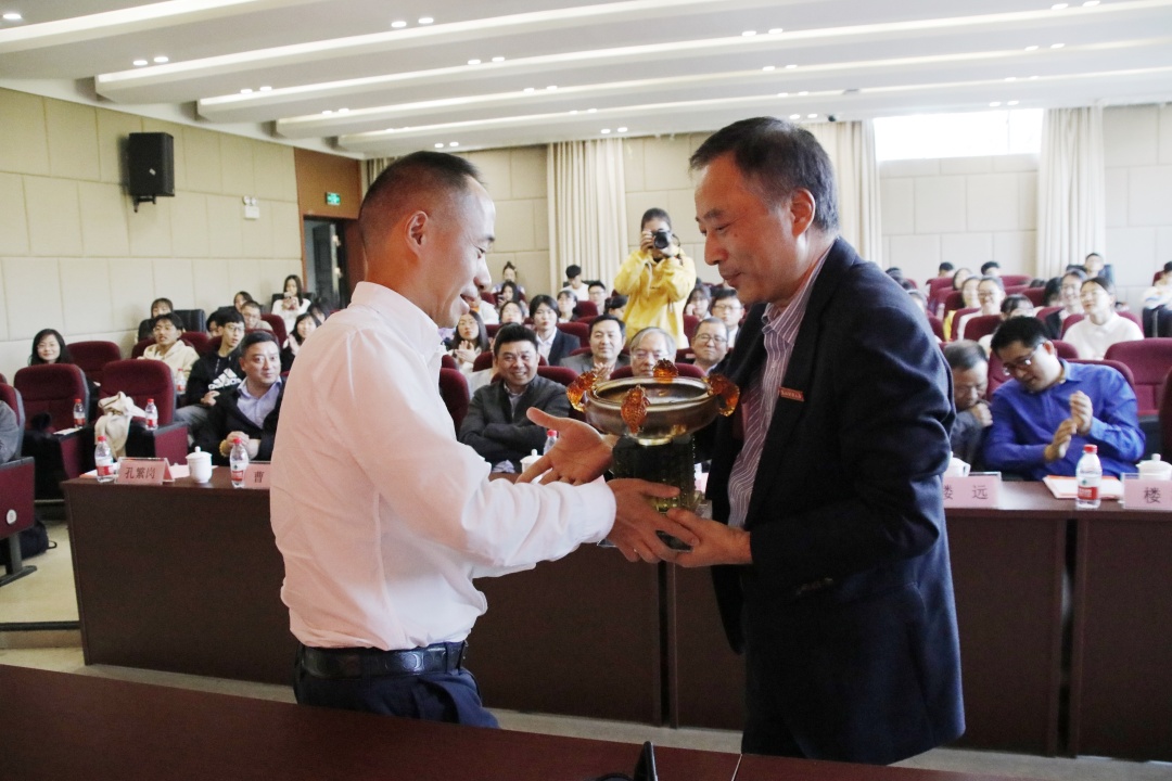 赠送琉璃鼎一尊,寓意着财大学子来自四面八方,财大人在各方为社会创造财富。