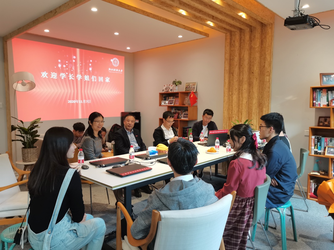 1998届李启兵、2000届俞谷声、2000届张易凡、2001届赵霄雷、2014届毛琼、2019届金卓超、2000届李泽圣等历届金融学会会长、骨干在金融学会会史馆相聚,重温往昔的校园青春之事,感慨学会的光辉发展历程,畅谈金融行业未来光明的前景。