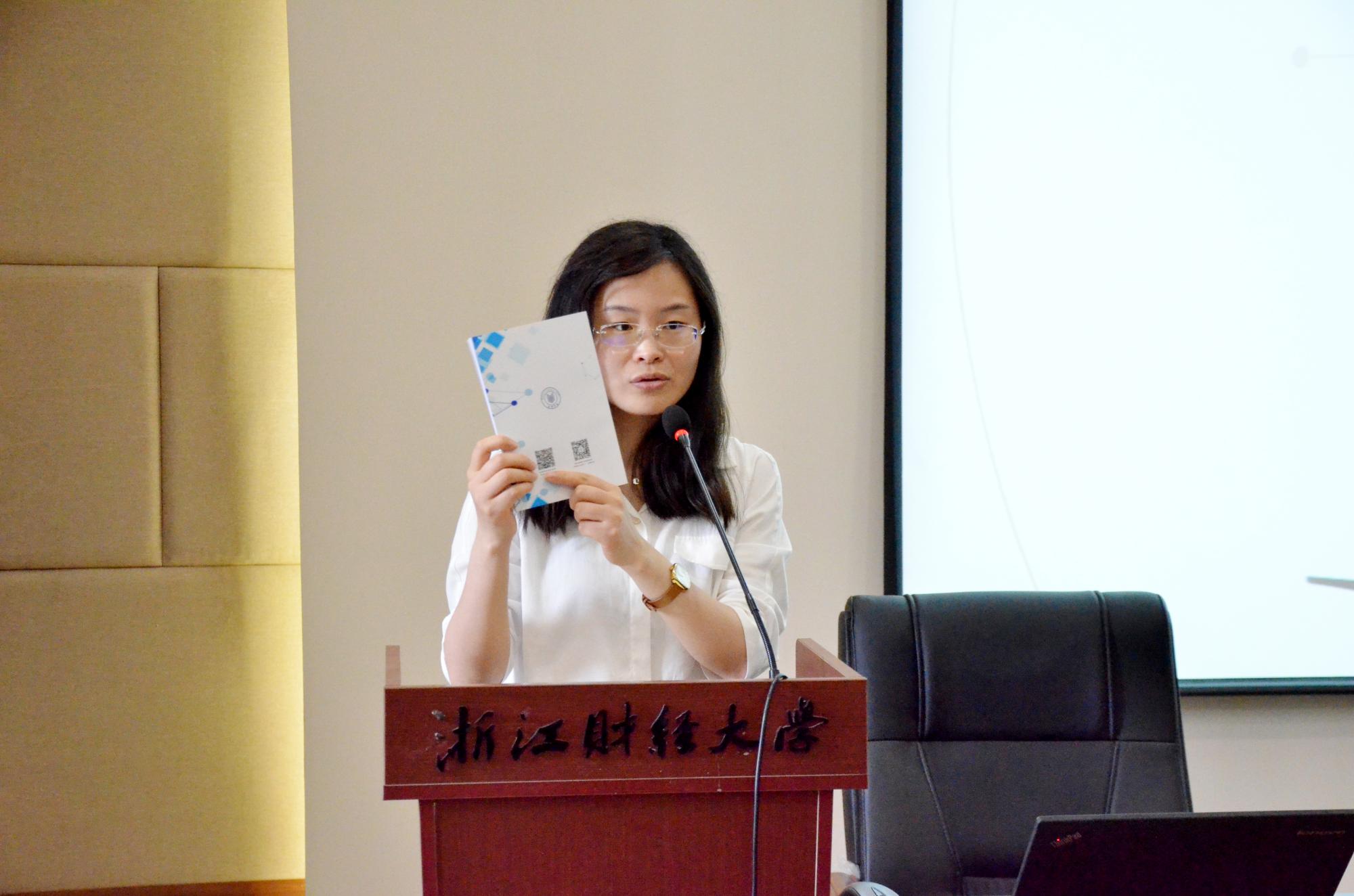 学生科创手册》的产生背景和主要内容。她表示这本科创手册也是通过访谈和问卷调查,了解到同学们在参加学科竞赛中遇到的各种实际困难,从而有针对性的制作的。这本手册主要解决金融学子参加学科竞赛时遇到的三个问题,“参加什么竞赛”“如何参加竞赛”以及“参加竞赛有何种奖励”,手册还对“挑战杯”和“互联网+”竞赛做了重点介绍。