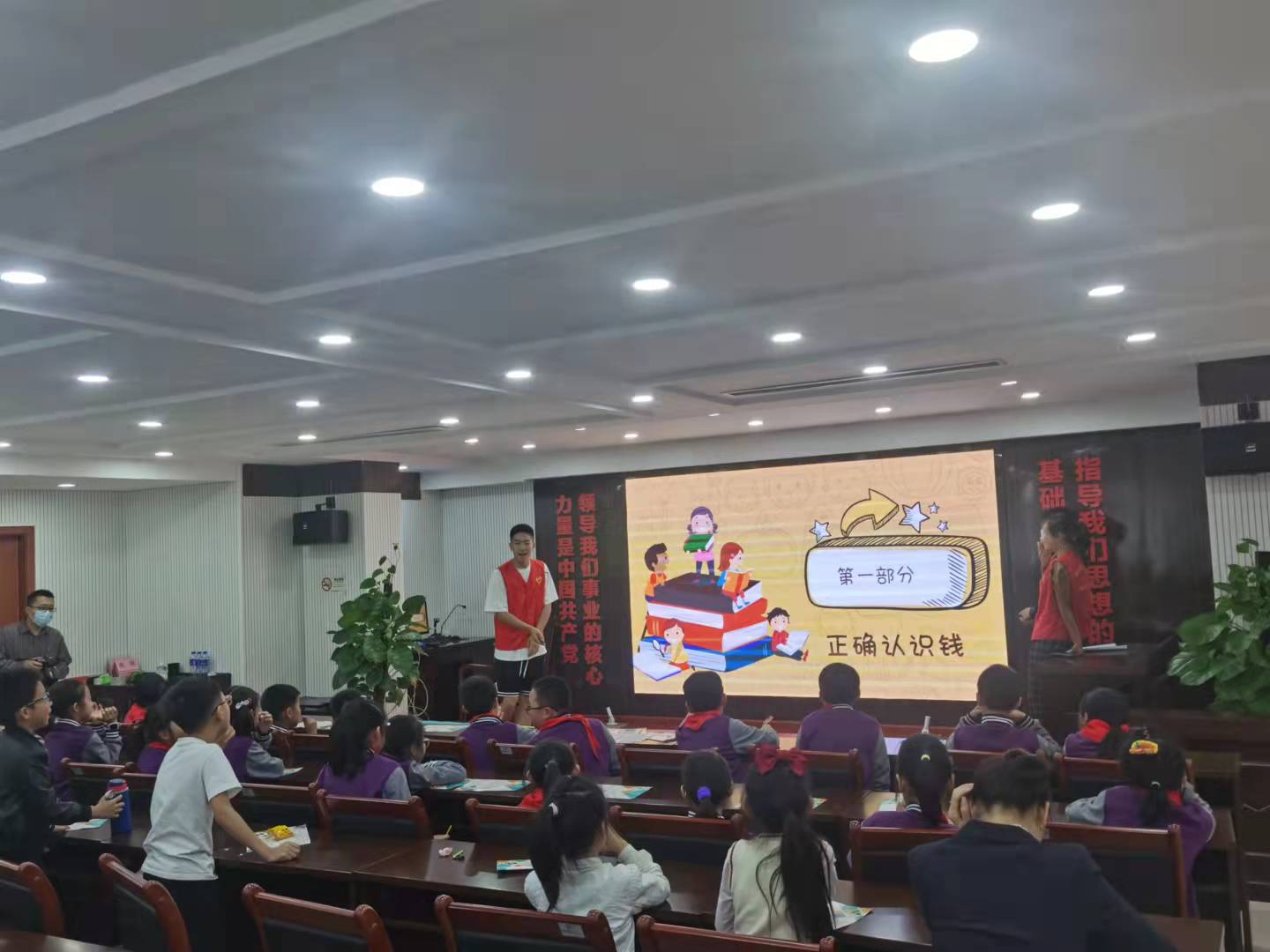 的志愿者们面向南沙学堂403海燕小队三十余名小学生开展了以“党史教育培沃土,财商知识润青苗”为主题的志愿服务活动。