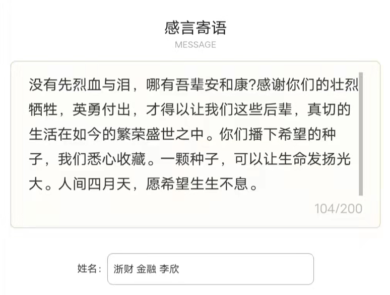 团学骨干们自行前往浙江革命烈士纪念馆网站,为革命先烈献花、鞠躬。大家通过一张张英烈的照片,重读他们可歌可泣、令人动容的事迹,并留下自己的感言寄语。