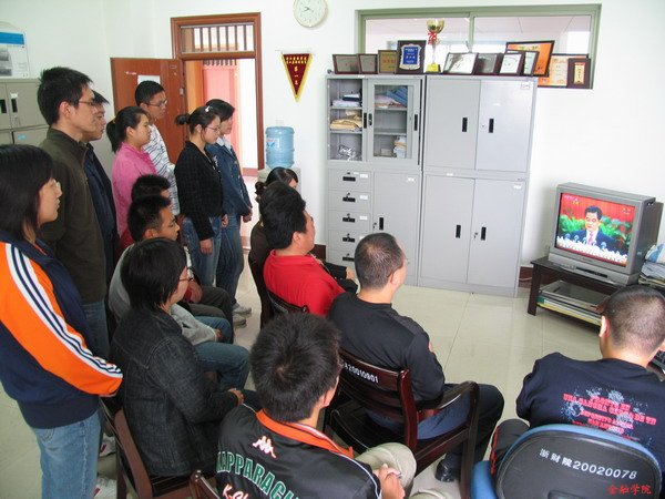 足球直播线上看 师生正在收看十七大开幕式