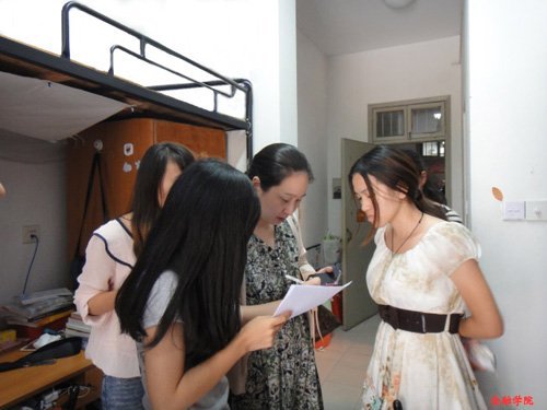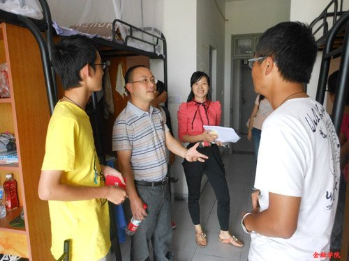 党总支副书记陈伟、学生工作办公室主任张虹、分团委书记陈炜等老师走访了各个新老生宿舍。