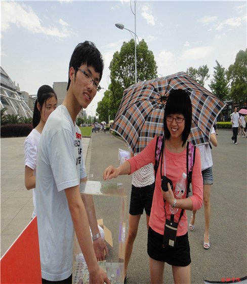 的志愿者们,更是头顶烈日,手拿手绘杯,积极热情地呼吁现场的同学献爱心。一顶顶小红帽,折射出了金融学子最为真诚的关爱和甘于奉献的精神。