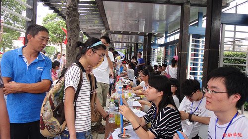 分团委、学生会志愿者组成了一支迎新队伍,以“一带一”的方式为新生们提供便捷的服务。保险购买,寝室入住,电话卡激活,行李搬运,生活学习经验介绍等,志愿者们穿梭在校园中,带着微笑和热情,为学弟学妹们讲解着新生注意事项。许多志愿者从早上6点多开始就在迎新点处开始准备、等待,在这一天中,他们来来回回不下10次,有的志愿者甚至顾不上吃饭,坚持以新生工作为主要任务。相信在志愿者诚挚的微笑,耐心的讲解中,12级新生的不安会减少很多同时能够更快地融入新的大学生活。