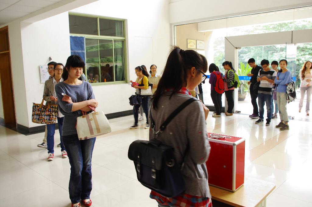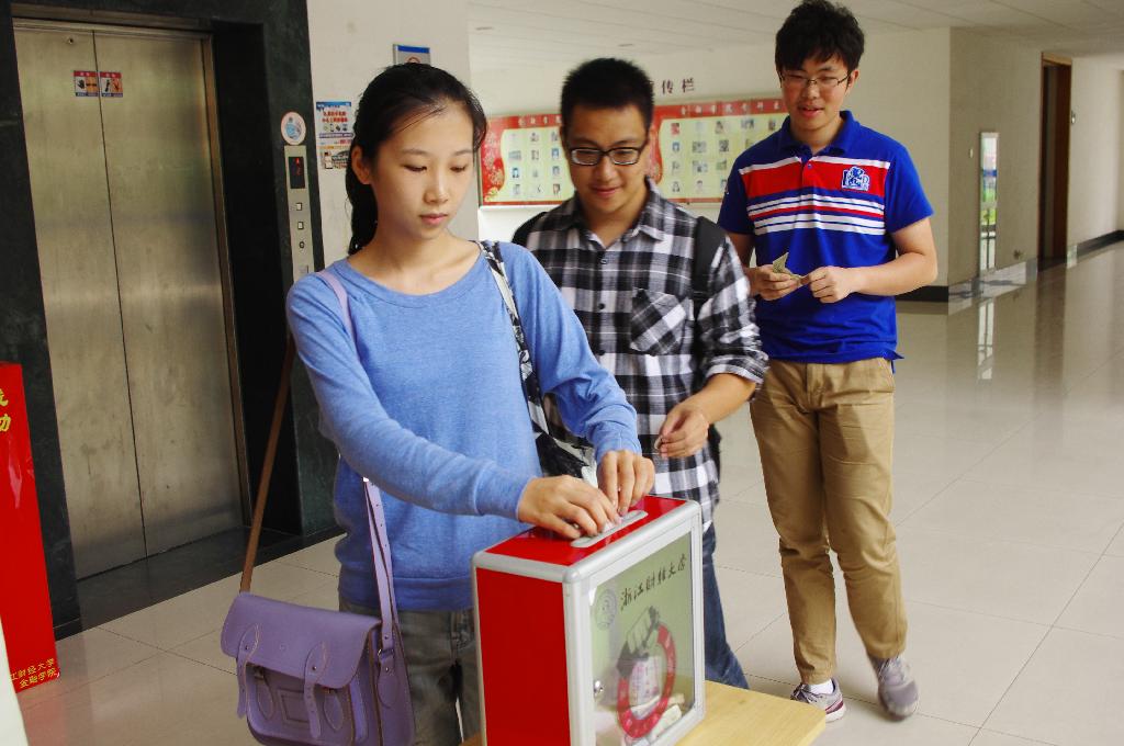 学生会组织部成员的组织下,党员们整齐地排成一列长队,郑重地将钱塞入捐款箱。募捐活动从13点30分进行到15点,期间不断有党员从各个地方赶来捐款。捐款的数目虽不多,但却饱含着党员们的情谊与爱心。
