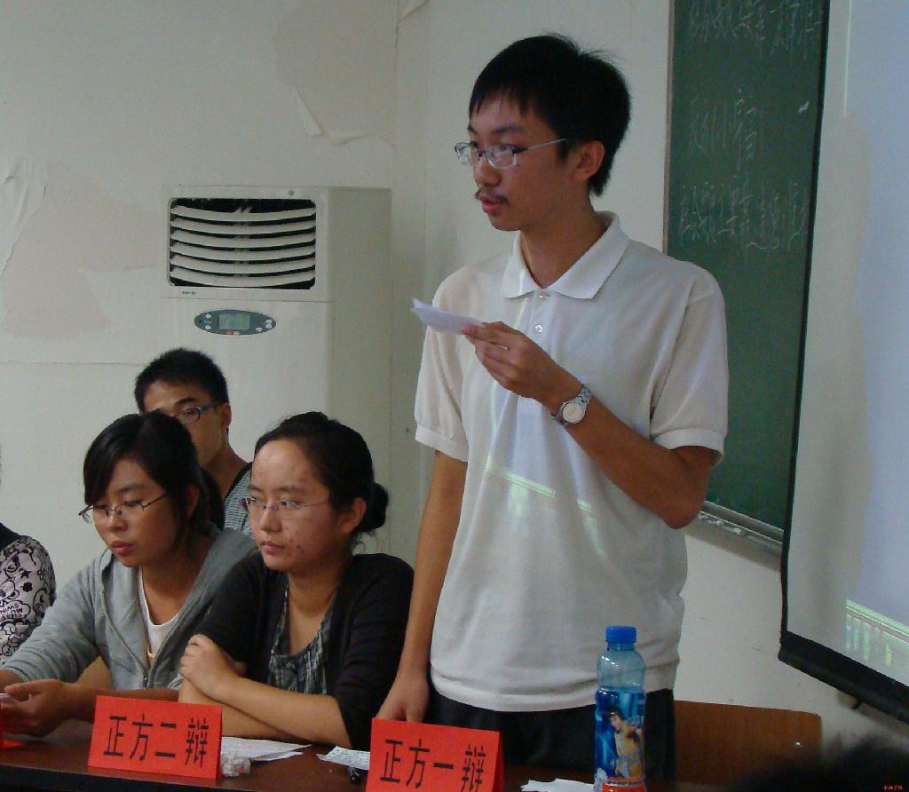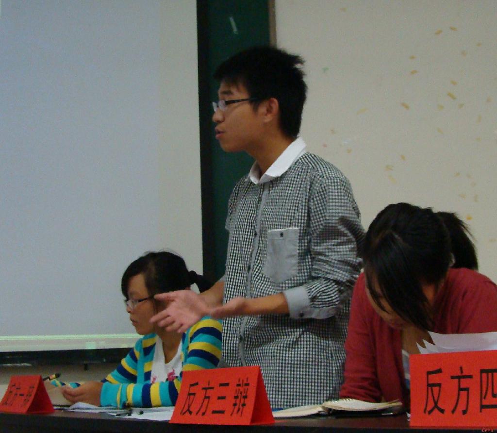 楼202拉开帷幕。本次比赛的评委由院辩论队队员担任,四个队辩手也可谓口才绝佳,思维敏捷。本着建立友谊、促进发展、共同进步的精神,辩论会在和谐的气氛中展开。