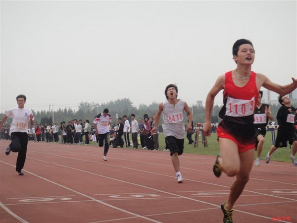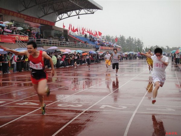 在令人期待的男子100米决赛前,运动员还没入场,跑道两边就挤满了人,都在兴奋地等待着传说中的“飞人”——来自09金融工程的邱鲱帆。邱鲱帆是校田径队成员,也是去年男子100米比赛的冠军,更是男子100米校记录的保持者。大家都举起自己手里的相机或手机,等待裁判令下,一睹“飞人”风采。只听发令枪“砰”一声响起,邱鲱帆如离弦之箭,率先冲过终点,夺得桂冠,场上尖叫声欢呼声喝彩声此起彼伏,更有同学还一脸诧异:“我还没反应过来呢,相机快门都没按,居然已经跑完了!”
