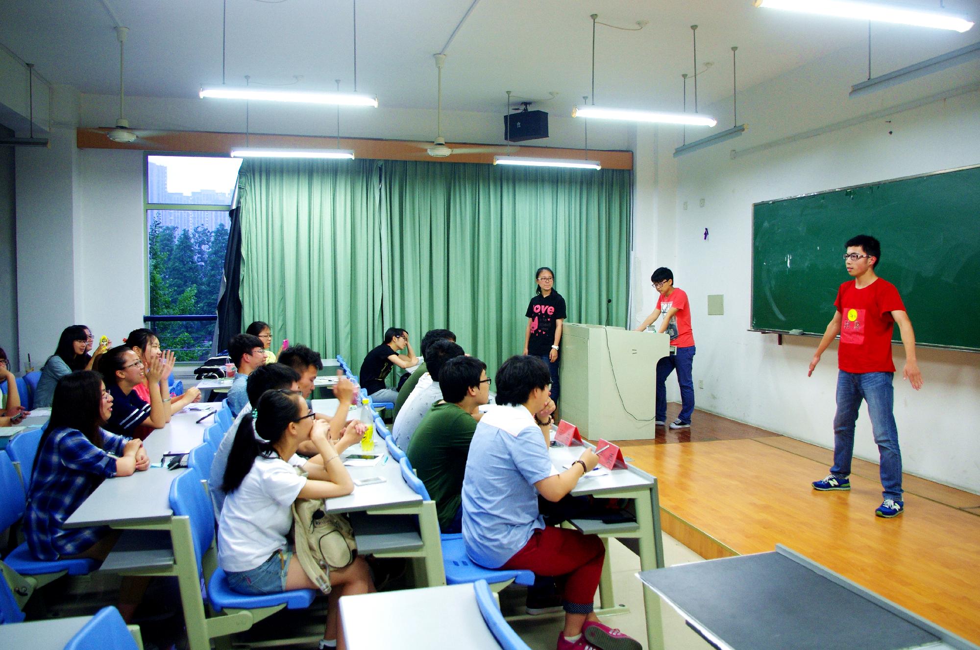 比赛的第一个环节是选手才艺show。吴一凡、赵佳倩两位同学分别演唱了一首歌曲,温柔婉转的歌声受到在场观众的一致肯定。心灵手巧的周玲童用PPT的形式展示了自己精美的手工制作。叶关炯同学则以两场活力四射的舞蹈引燃了现场热烈的气氛,他挥洒自如的台风深深打动了在座评委,以第一轮最高成绩遥遥领先其他选手,一举进入了决赛环节。其他三位选手则进入第二环节“智力大比拼”,每位选手随机选择七道问题进行回答,正确率最高者进入总决赛。问答环节充分显示了选手的聪明机智,现场笑声不断。最后赵佳倩同学以微弱的优势进入了决赛PK环节。叶关炯和赵佳倩两位选手各自用30秒的时间拉票,由大众评委和嘉宾评委进行投票,选出今晚的优胜得主。当主持人宣布赵佳倩同学以22:20的票数险胜时,观众席上爆发出了阵阵掌声。叶展望副主席为赵佳倩颁发了比赛的神秘大奖——一张电影票,选手可以到任意影城观看一部电影,然后到主办方处报销。