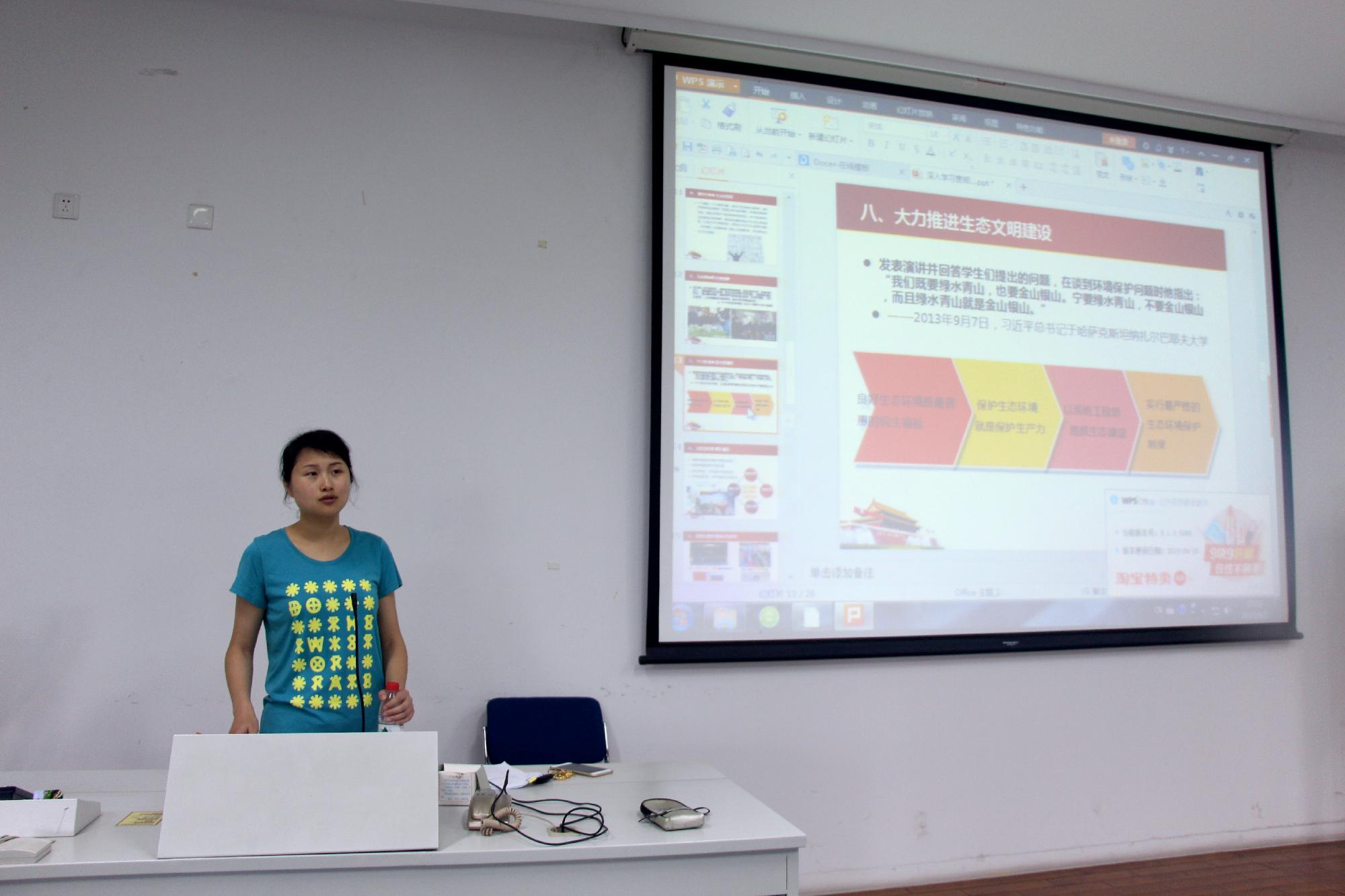 辅导员吴轶韵老师担任本次形势政策课的主讲人。本次授课题目为“深入学习习近平总书记的十八大讲话,全面建成小康社会”。吴轶韵老师面向当代中国的具体需求,结合多方面介绍了强国的必要与途径,提出了大学生成为强者的必要条件,在座同学们都大受鼓舞。