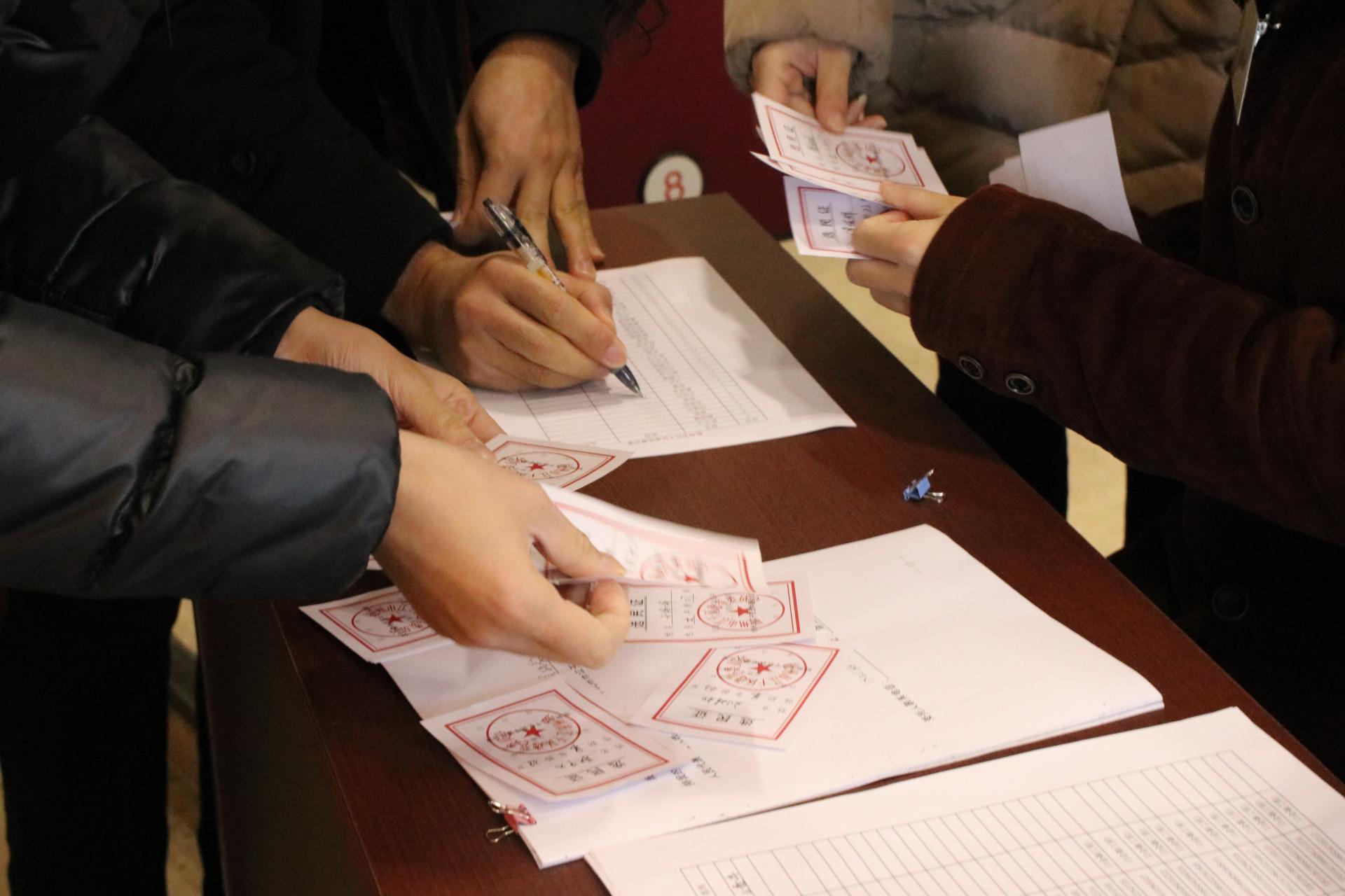 选举结束以后,在监票人的监督之下,计票人验票并认真负责地清点了选票,并统计结果,上报至江干区选举委员会。