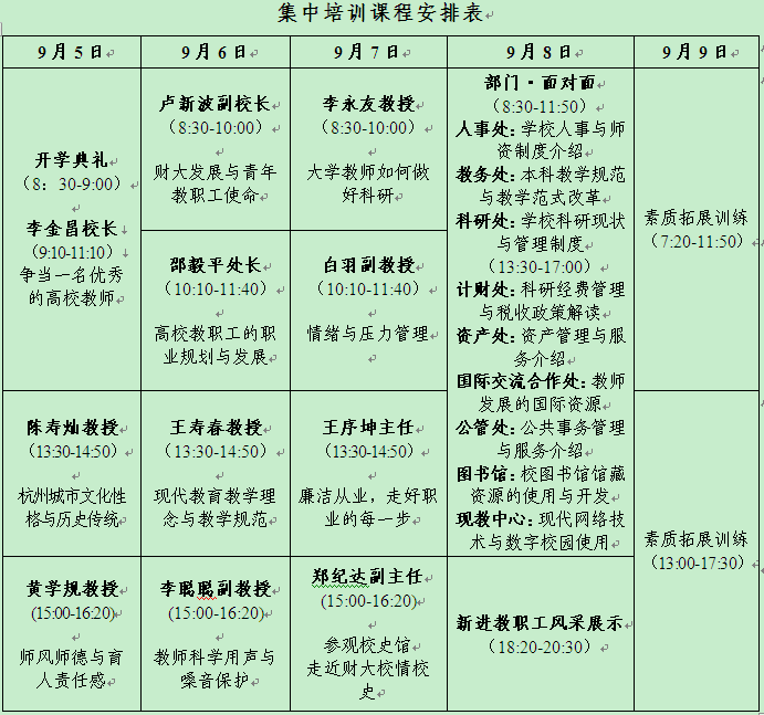 以“了解财大、融入财大、学为人师”为目的,从新进教职工的实际需要出发,通过集中专题研修、分散培训、素质拓展、网络自学、调研规划、汇报和交流等多种培训形式,旨在帮助新进教职工: