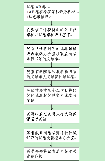 根据学校《迎接教育部本科教学工作审核评估动员大会》的会议精神,经足球直播线上看 教学委员会讨论决定从2016 – 2017学年第一学期起依照试卷管理流程对试卷的审核、付印、保管、装订、存档等工作进行管理,具体流程如下:
