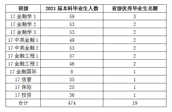 按班本届毕业生人数的4%的比例评选。具体名额分配详见下表: