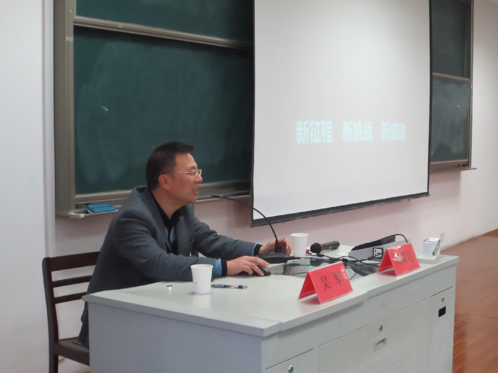 在主持人简单的介绍过后,吴军副处长就直奔主题,用PPT展示了本次讲座将要呈现的三个方面。在正式开始之前,吴军副处长还列举了某温州企业老板因为融资失败而自刎的例子,强调了金融综合改革的重要性和必要性。首先,他提出“温州金融综合改革的缘起”,他又将此分为三个时间段:温州民间金融作为产业发展重要支撑的模式难以为继、民间资本过度投机导致资金链断裂,造成大规模金融风波以及合理引导民间融资阳光话,规范化,解决小微企业融资难的问题。吴军副处长生动的举例以及详细的阐述让在场的各位师生对此产生了更加深刻的理解。随后,他又提出温州金改的目标和路线,尤为重点的是“两多两难”问题——小微企业多融资难,民间资金多投资难。第三部分,他则围绕温州金改的主要进展与在场的观众进行了深入的探讨。他结合当前的发展形式,展现了温州在金改过后表现出来的强劲势头以及带给人们的新鲜血液,引得在场的师生们连连称赞。
