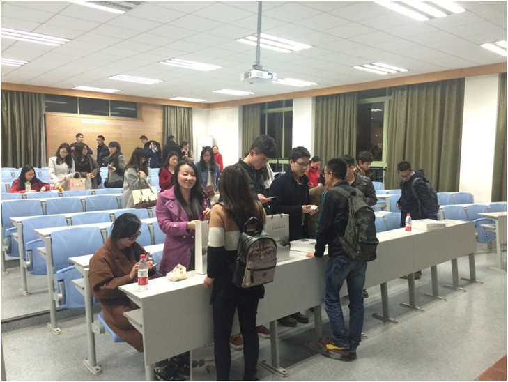交流会在主持人王琰精彩的开场白中拉开序幕,师兄师姐们一一与同学们分享了他们在研究生期间有关实习、面试、择业及学术方面的经验和教训。就职于财通证券基金子公司的潘慧学姐,向同学们分享了她在基金公司的实习经历,分析了基金行业的就业形势,就研究生阶段如何找实习岗位向同学们传授了经验。即将就职于平安银行杭州分行的周运金学长,以生动活泼的语调,描述了他在应聘面试中遇到的种种经历,并鼓励大家在求职过程中要保持乐观向上的心态。
