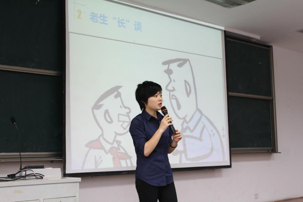 对大家的欢迎和关注。第二环节13级所有在场优秀学长学姐依次向学弟学妹们介绍自己,热心细致,令人倍感亲切,顿时拉近了新老生之间的距离,此外还有几个14级的学长学姐也给和大家分享了他们研究生的学习生活。不少15级新生在学长学姐们的介绍中找到了自己的同乡或同门,可谓收获良多。