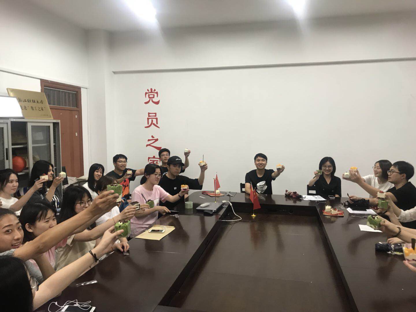 欢送会上,支部成员分享蛋糕,深层次地交流情感,每个即将离别的党员黯然神伤,那是对学弟学妹的不舍,对组织的依恋,和对母校的感恩。