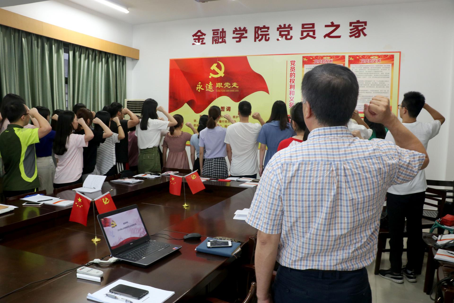 党委书记蔡国金、党委副书记叶秀、辅导员翟丽媛、王伟伟、聂亚平、沈耀杰以及全体新发展党员参加了本次活动。