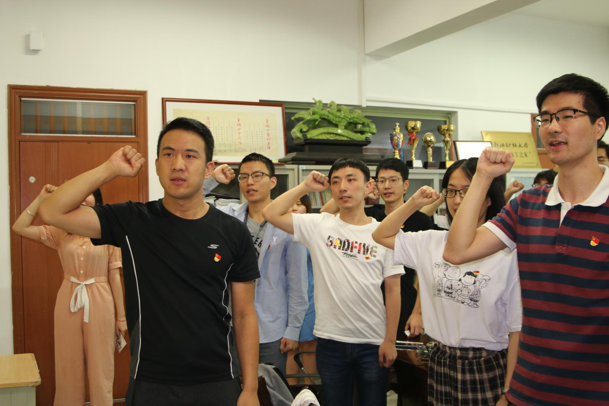 破冰游戏过后,党支部指导老师聂亚平进行了简短的发言,聂亚平老师提出了对新党员的期许,也期待着每一位新党员都能在足球直播线上看 研究生党支部有自己的收获。发言结束后,支委们为每一位新党员佩戴上党徽,在聂亚平老师的带领下重温了入党誓词,希望每一位党员都要不忘初心,牢记使命。