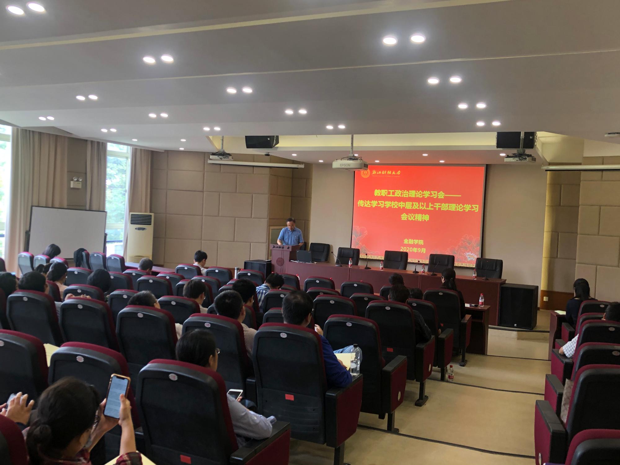 在3-202报告厅召开教职工政治理论学习会,专题学习省委书记袁家军在省委党校秋季学期开学典礼上的讲话精神,以及传达学习学校中层及以上干部理论学习会议精神。会议由党委书记蔡国金主持。