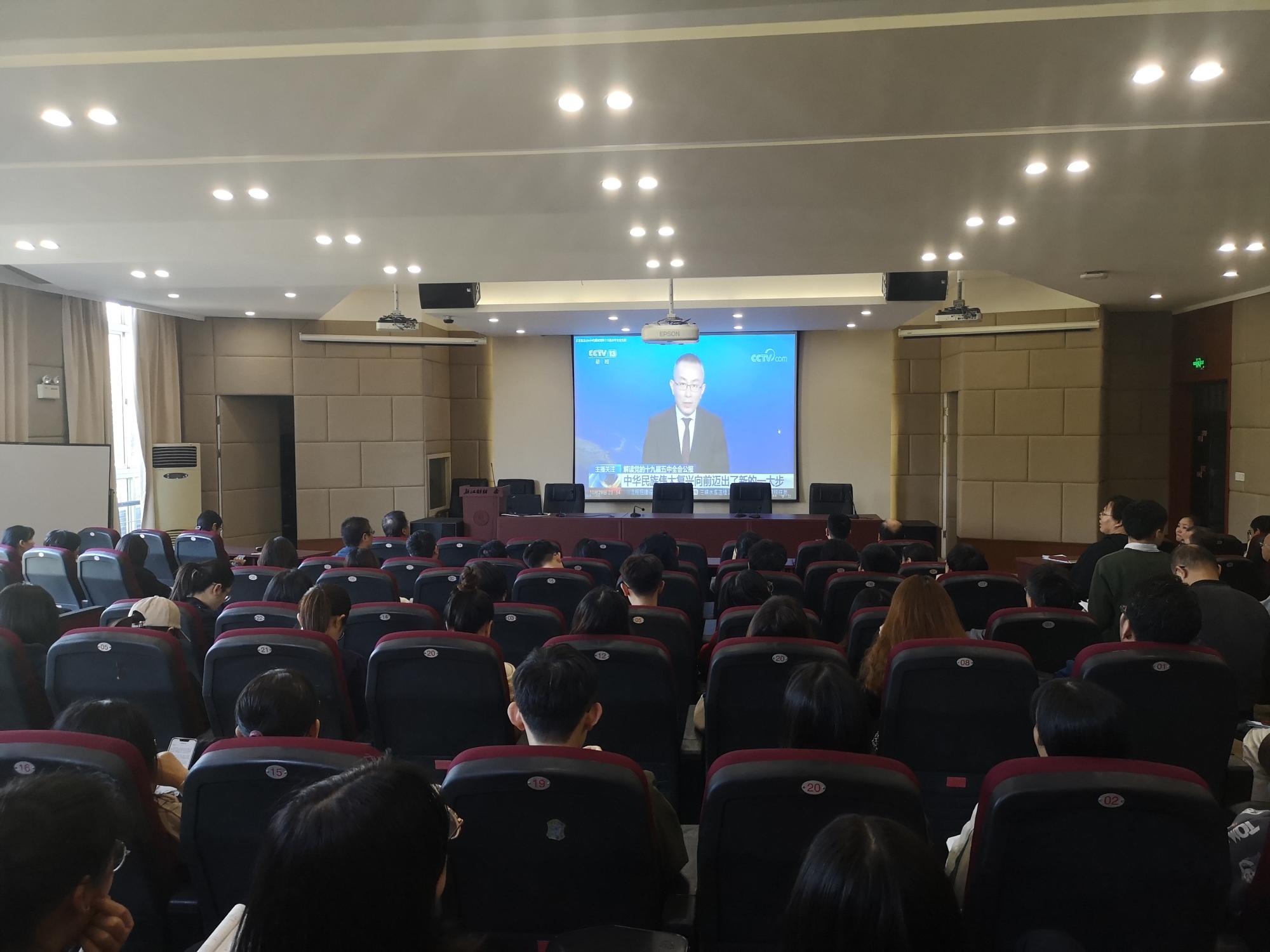 党委以理论中心组学习、党员大会、支部党日活动等方式组织传达学习党的十九届五中全会精神。党员们通过集体收看中共中央举行的新闻发布会、研学全会公报等,积极关注十九届五中全会动态,深入学习领会习近平总书记在党的十九届五中全会上的重要讲话和全会文件精神。