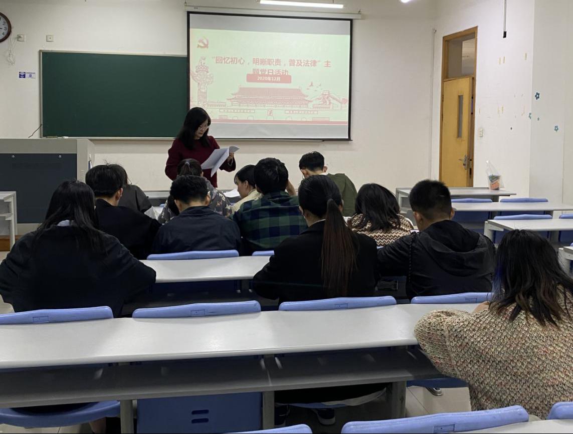 楼101教室举办了以“回忆初心、明晰职责、普及法律”为主题的党日活动。